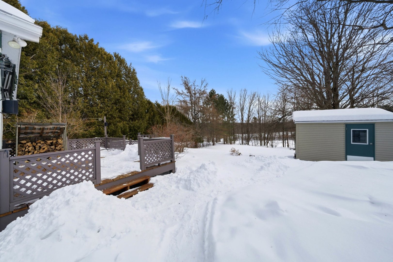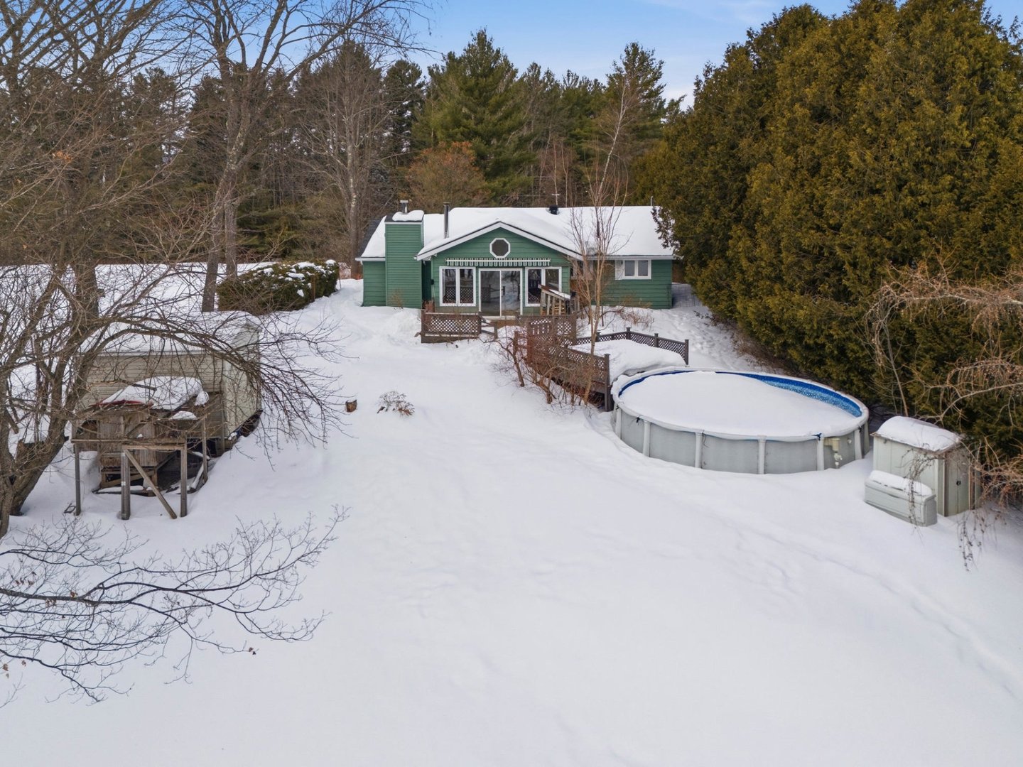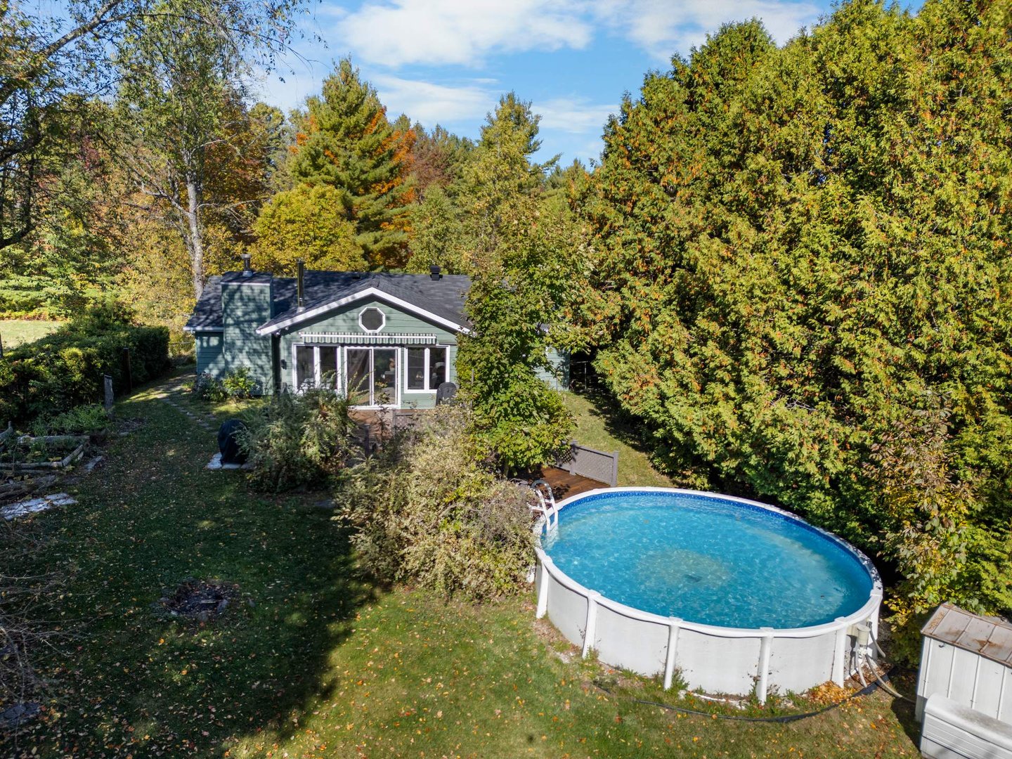Luminaires et ventilateur au plafond, réfrigérateur (la porte est défectueuse), cuisinière électrique, déshumidificateur, piano avec banc, piscine hors-terre et ses accessoires (sans garantie quant au fonctionnement et à leur état car la piscine est âgée), auvent du balcon arrière, 2 remises, remise de métal pour la piscine, poulaillers, bacs à composte.