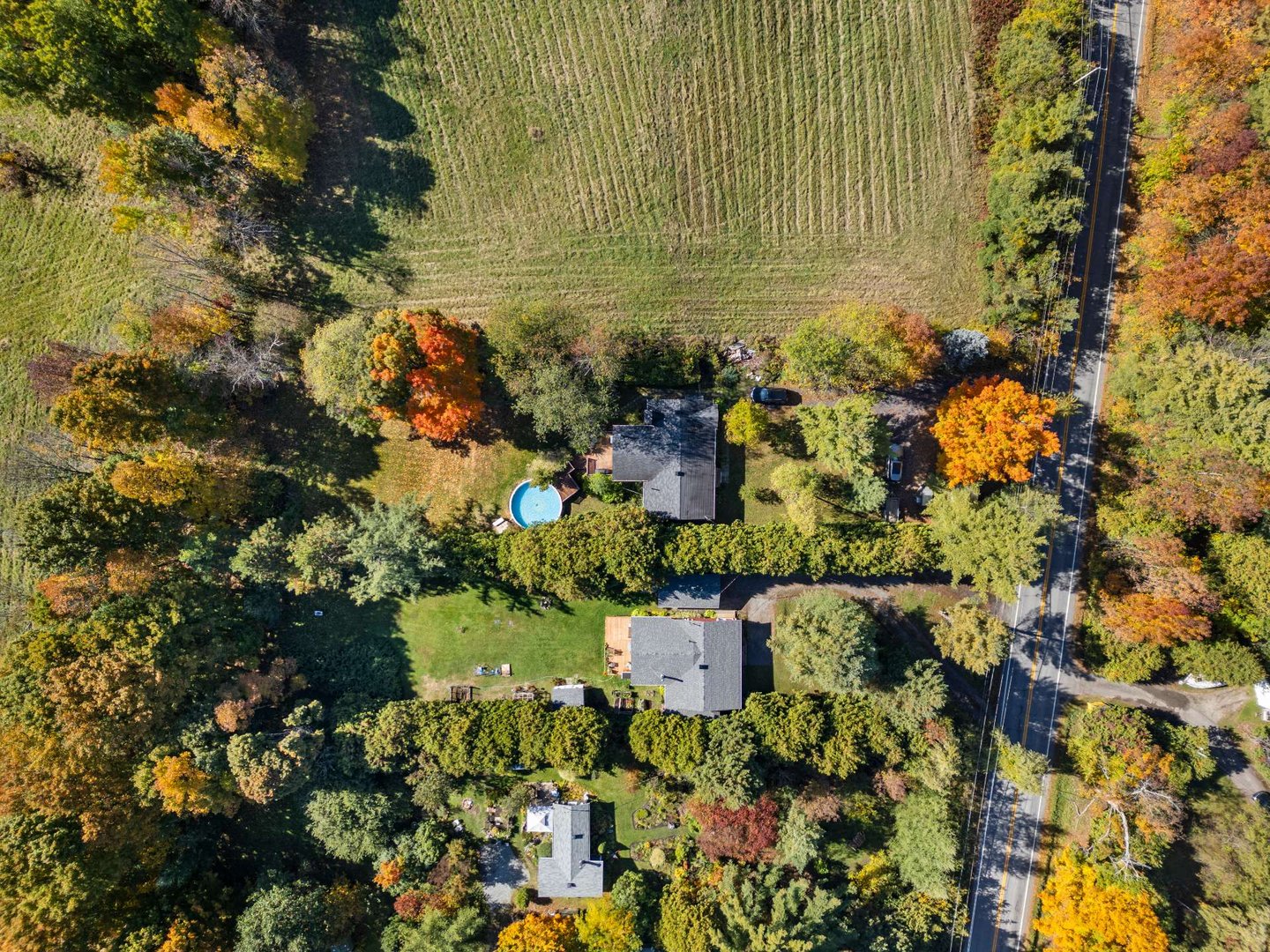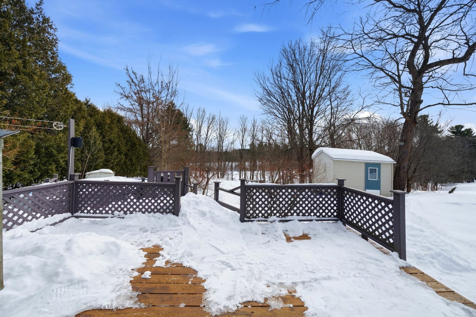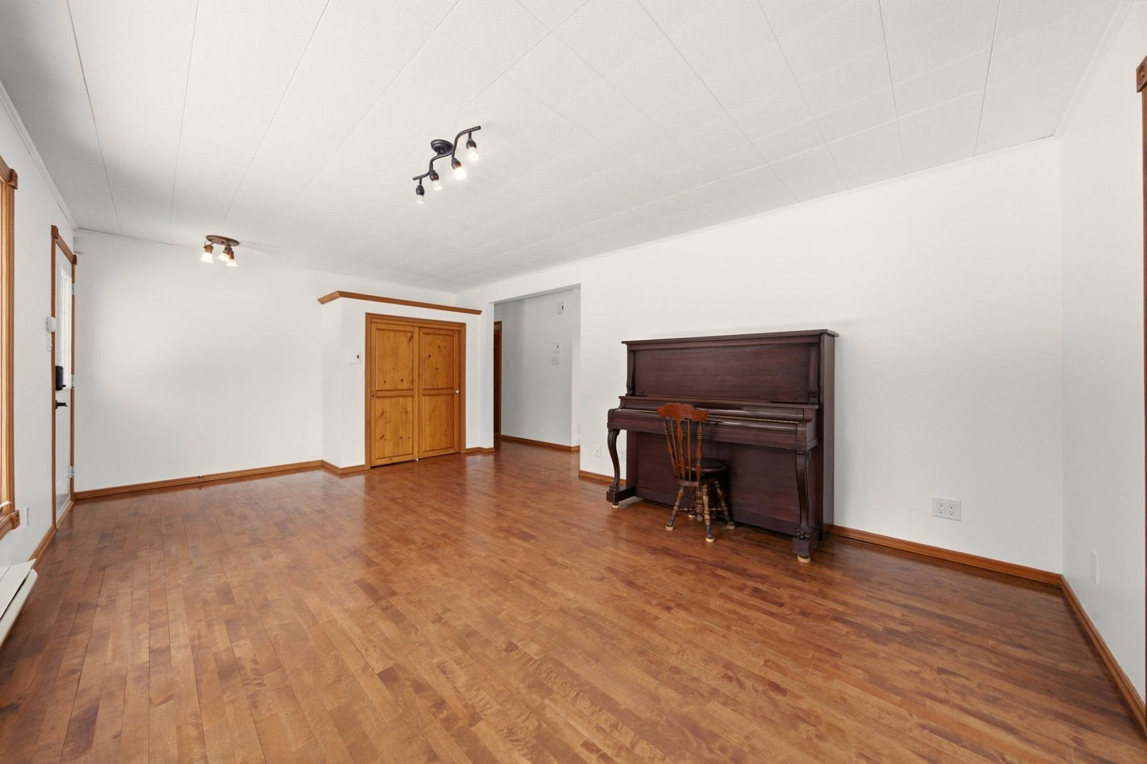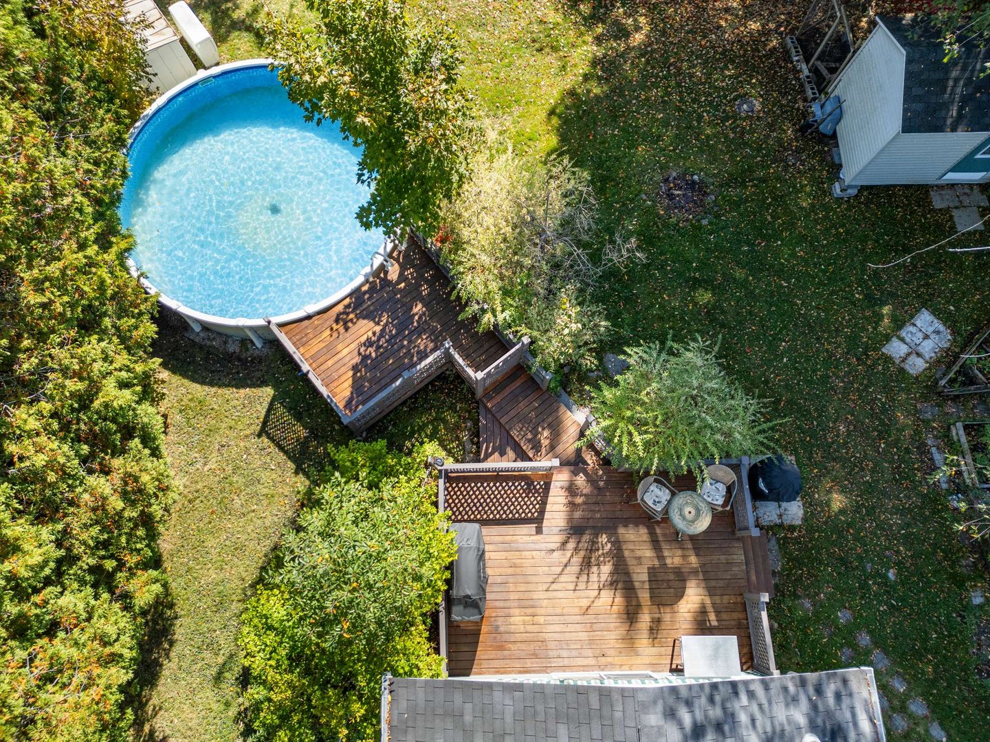 Luminaires et ventilateur au plafond, réfrigérateur (la porte est défectueuse), cuisinière électrique, déshumidificateur, piano avec banc, piscine hors-terre et ses accessoires (sans garantie quant au fonctionnement et à leur état car la piscine est âgée), auvent du balcon arrière, 2 remises, remise de métal pour la piscine, poulaillers, bacs à composte.