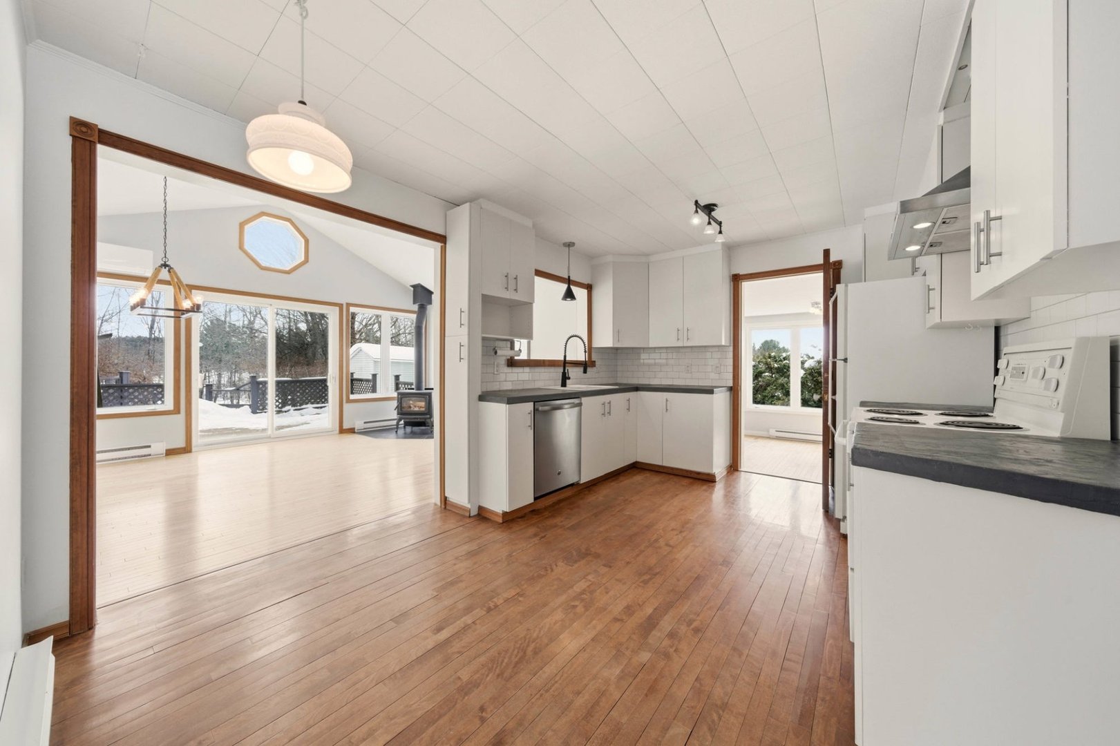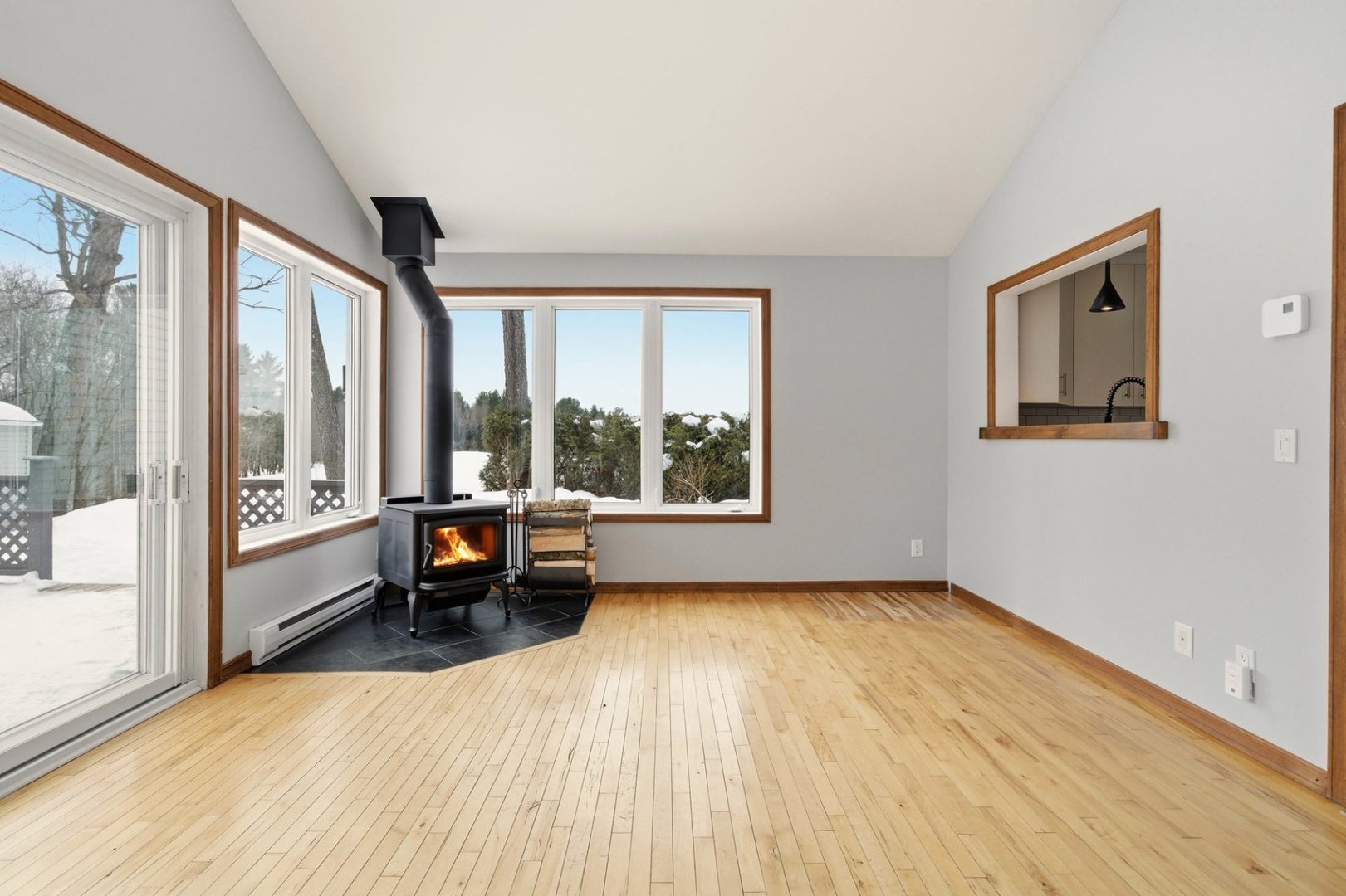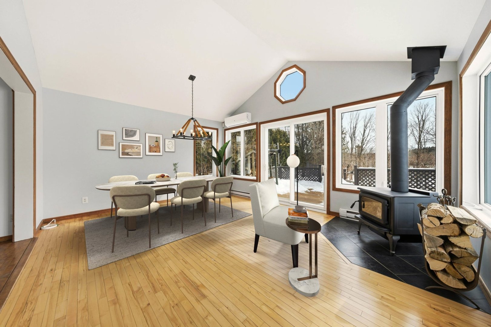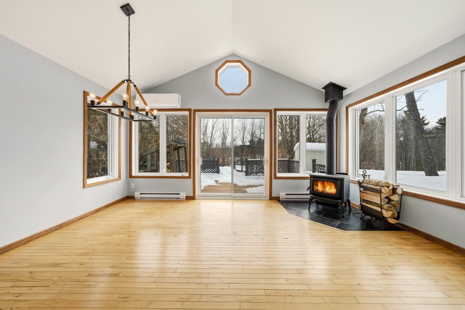 À 10 minutes du centre-ville de Magog, cette chaleureuse maison de plain-pied offre une vue spectaculaire sur les montagnes et les couchers de soleil. Lumineuse salle à manger au plafond cathédrale avec poêle à bois, 2 chambres à coucher et 1 bureau (possibilité de convertir en chambre), une salle de bain complète et une salle de lavage indépendante. Le tout sur un même niveau. Terrain intime de plus de 25 000 pi² avec arbres matures. Tranquillité assurée avec longue entrée (maison à 120 pieds du chemin) et aucun voisin à l'arrière. Une propriété qui a tout pour plaire, autant comme résidence principale que pour un pied-à-terre en Estrie!