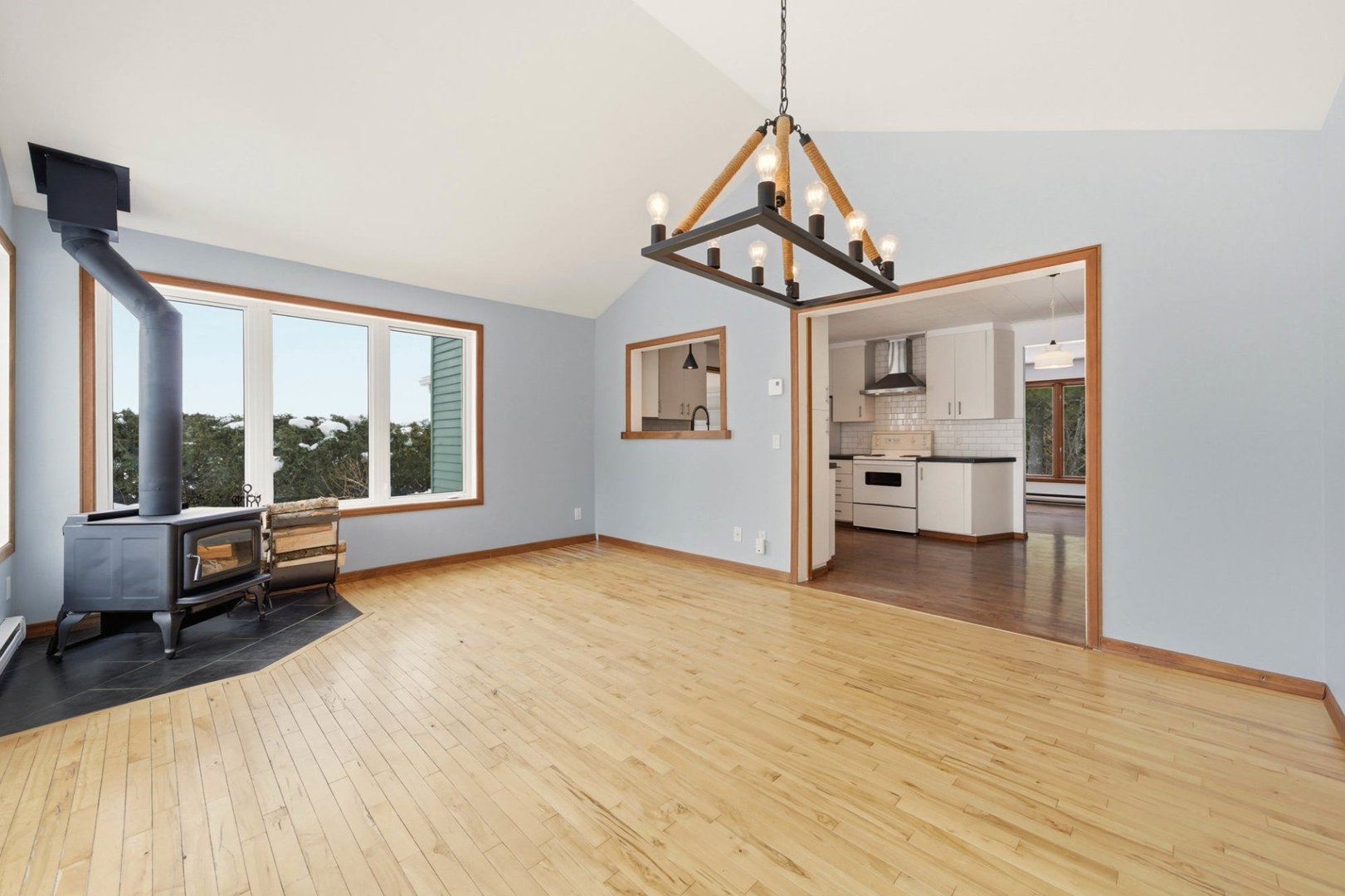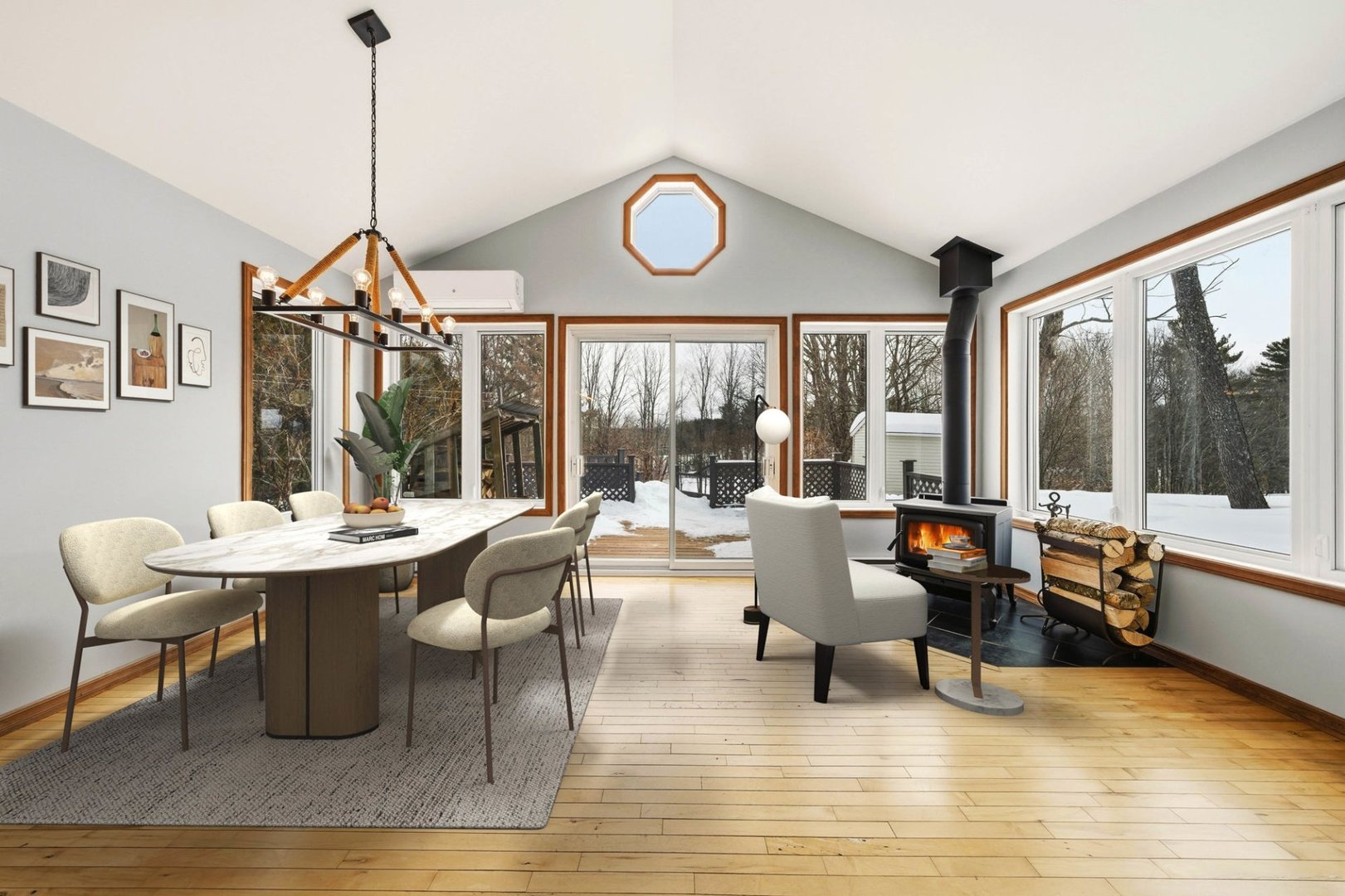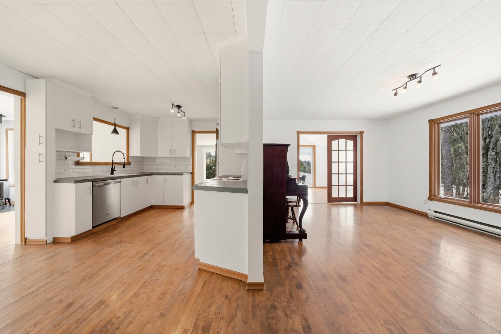À 10 minutes du centre-ville de Magog, cette chaleureuse maison de plain-pied offre une vue spectaculaire sur les montagnes et les couchers de soleil. Lumineuse salle à manger au plafond cathédrale avec poêle à bois, 2 chambres à coucher et 1 bureau (possibilité de convertir en chambre), une salle de bain complète et une salle de lavage indépendante. Le tout sur un même niveau. Terrain intime de plus de 25 000 pi² avec arbres matures. Tranquillité assurée avec longue entrée (maison à 120 pieds du chemin) et aucun voisin à l'arrière. Une propriété qui a tout pour plaire, autant comme résidence principale que pour un pied-à-terre en Estrie!