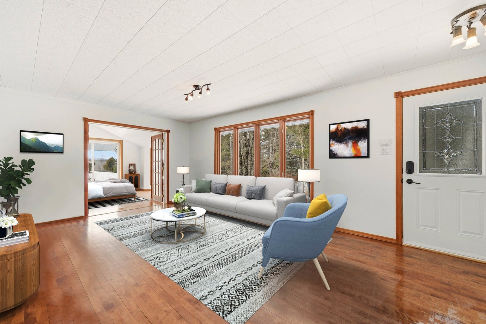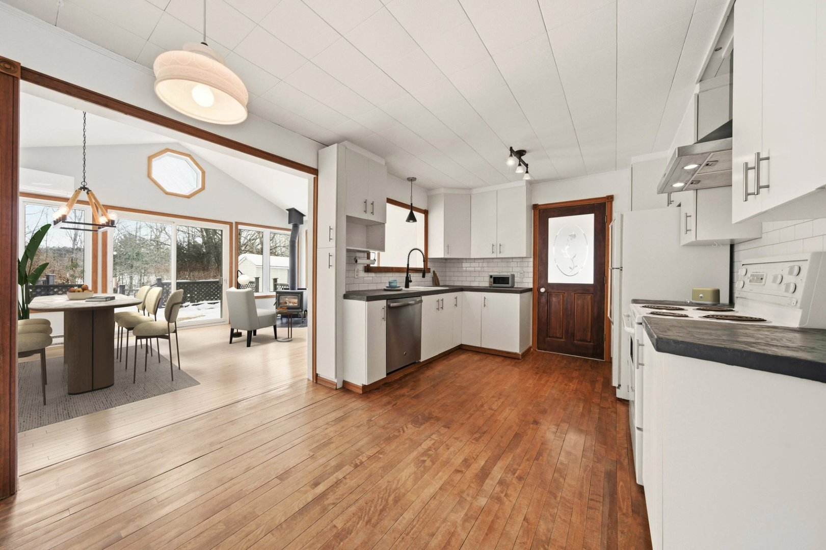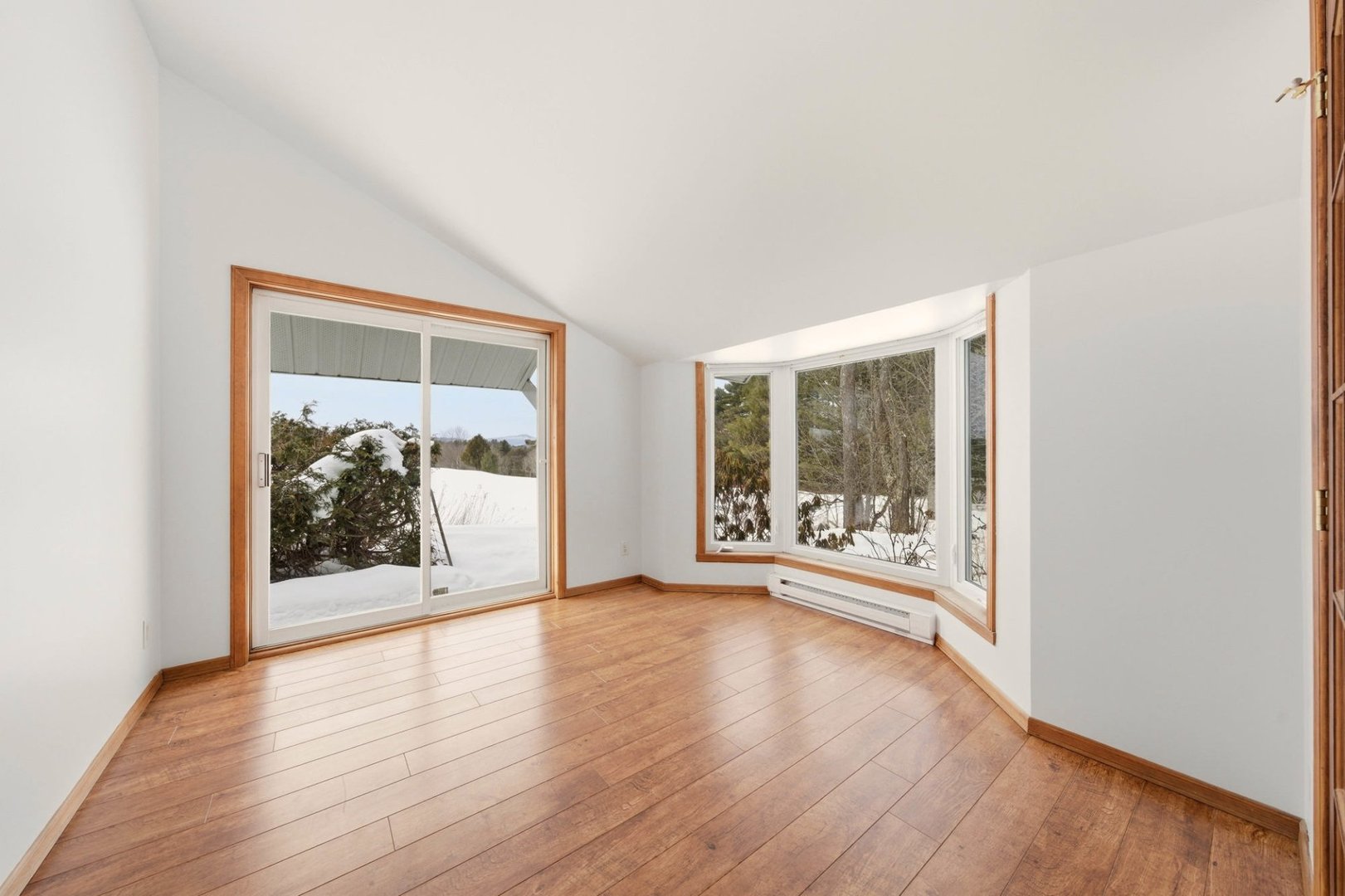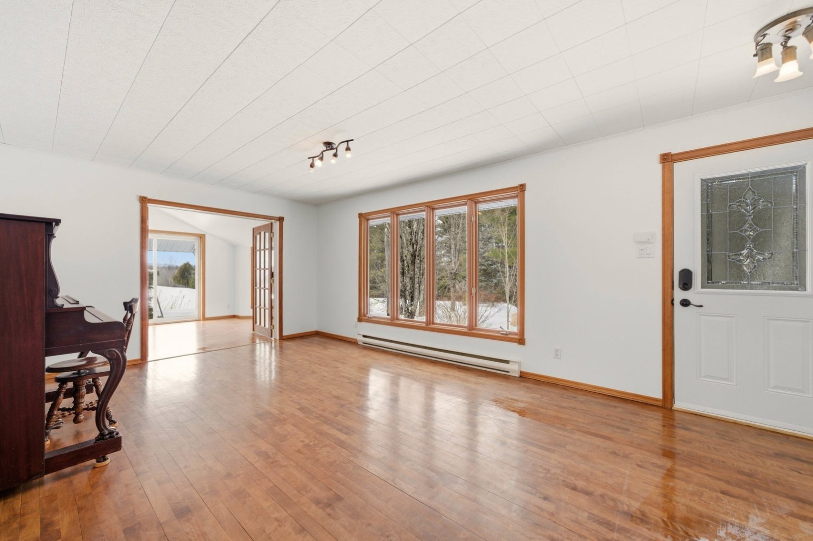 À 10 minutes du centre-ville de Magog, cette chaleureuse maison de plain-pied offre une vue spectaculaire sur les montagnes et les couchers de soleil. Lumineuse salle à manger au plafond cathédrale avec poêle à bois, 2 chambres à coucher et 1 bureau (possibilité de convertir en chambre), une salle de bain complète et une salle de lavage indépendante. Le tout sur un même niveau. Terrain intime de plus de 25 000 pi² avec arbres matures. Tranquillité assurée avec longue entrée (maison à 120 pieds du chemin) et aucun voisin à l'arrière. Une propriété qui a tout pour plaire, autant comme résidence principale que pour un pied-à-terre en Estrie!