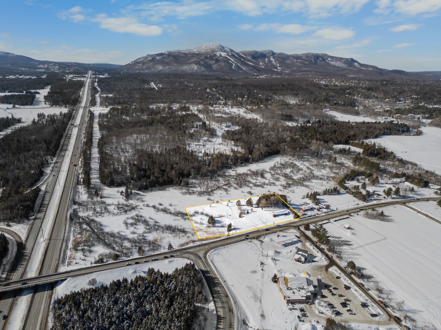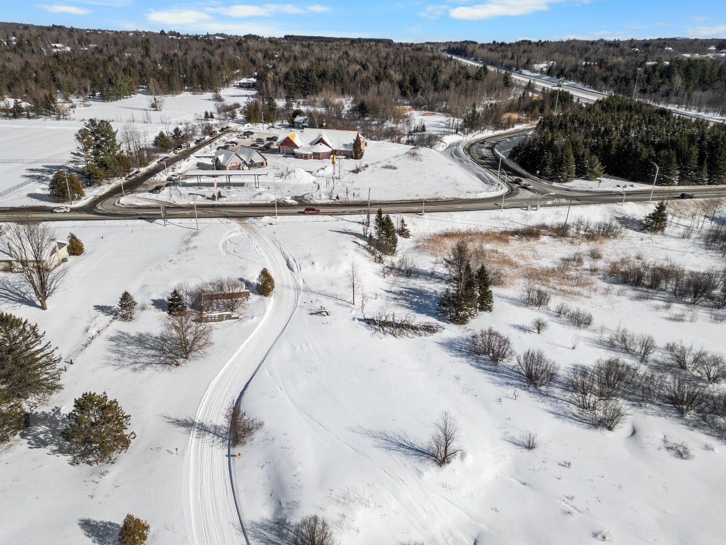 Opportunité exceptionnelle! 2 lots commerciaux totalisant ± 12 403 m² (± 133 500 pi²) situés directement à la sortie 118 de l'autoroute 10 à Magog. Visibilité et accessibilité incomparables depuis l'un des axes routiers les plus achalandés de l'Estrie. Un projet commercial a été développé avec possibilités de : restaurant avec service au volant (± 3 800 pi²), station-service (± 3 000 pi²) et restaurant (± 1 200 pi²). 39 cases de stationnement, 2 entrées charretières. Bâtiment existant sur place servant de bureau actuellement. Plans et études disponibles.