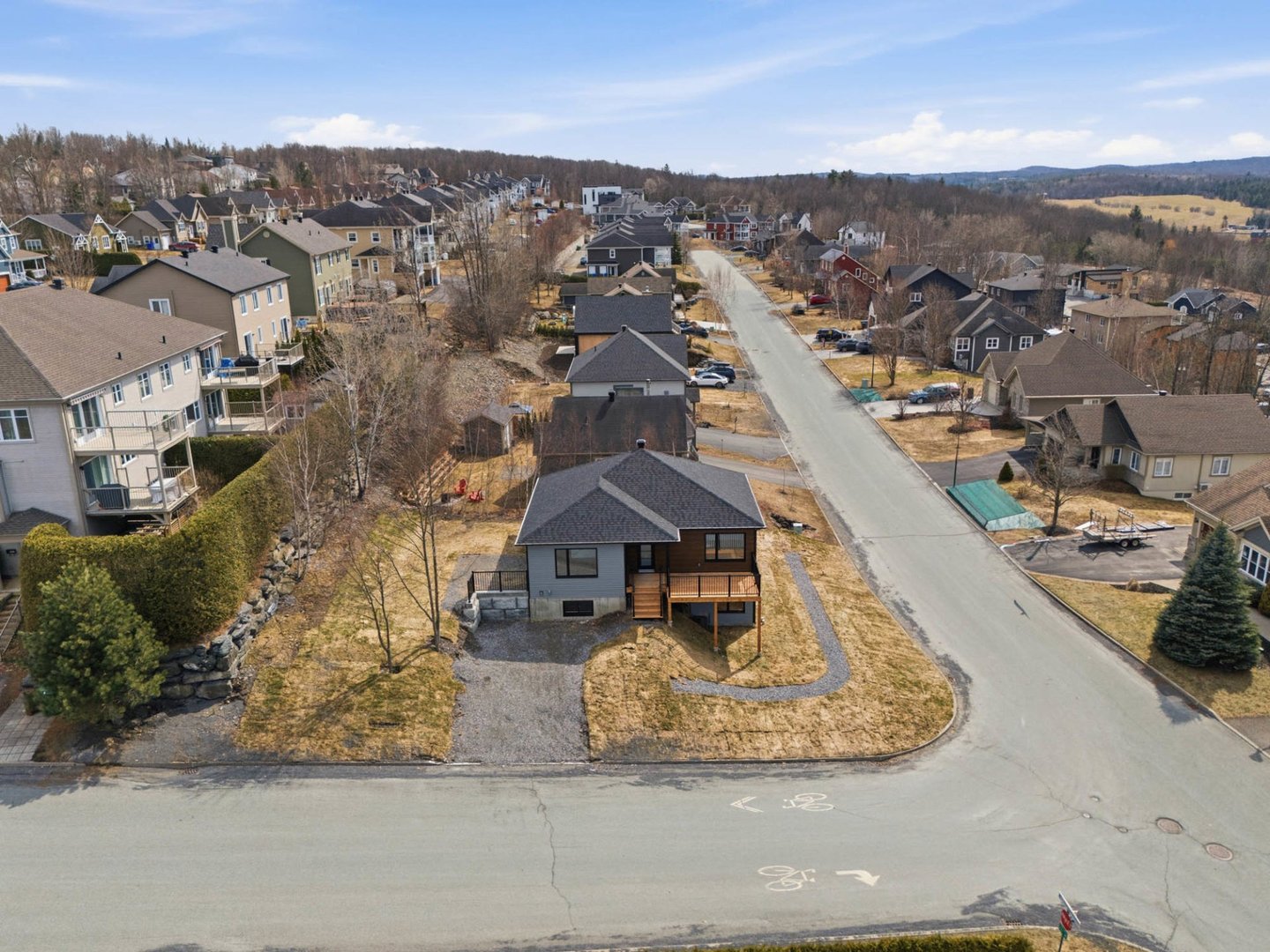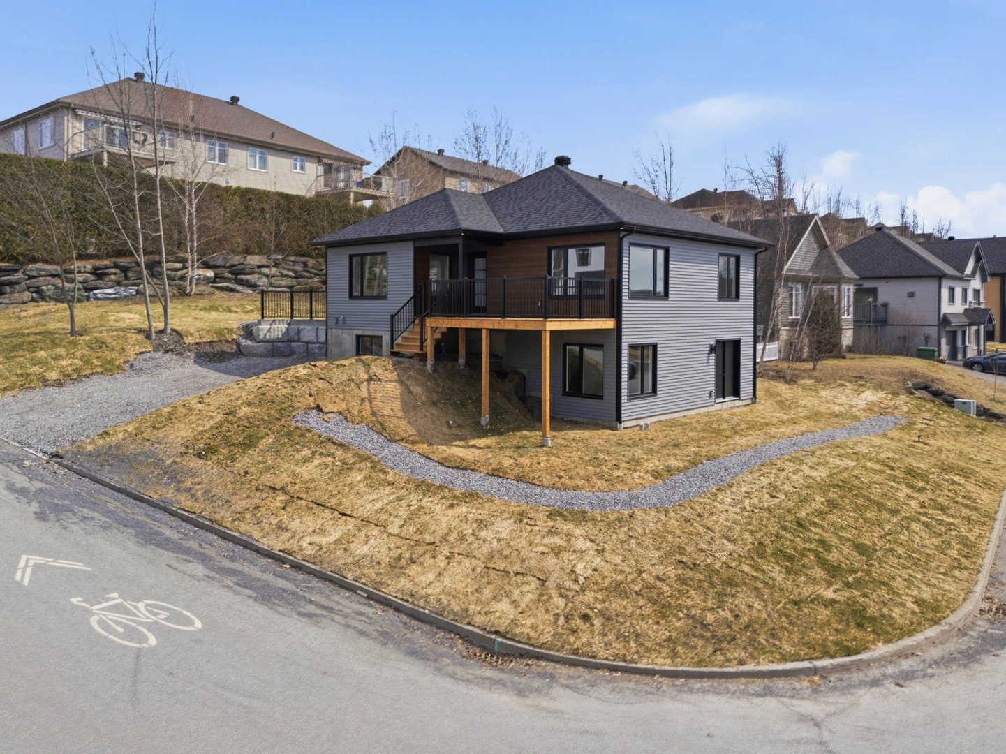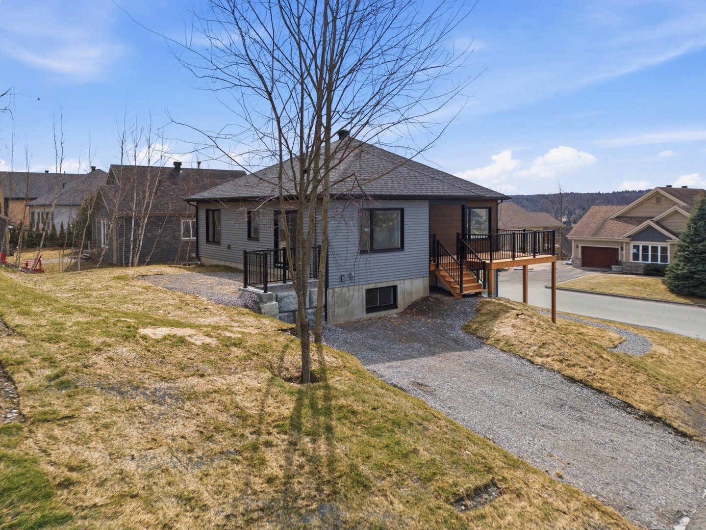 Coup de coeur! Construction neuve 2026 avec magnifique vue sur le mont Orford. Bungalow aux lignes contemporaines avec rez-de-jardin aménagé, offrant 4 chambres, 2 salles de bain complètes, grand walk-in, salle de lavage indépendante et sous-sol exceptionnellement lumineux. Aire ouverte conviviale, cuisine moderne avec îlot, planchers de bois d'ingénierie, thermopompe et terrasse avec vue dégagée. Terrain de coin de plus de 7 450 pi², quartier familial recherché, non loin du centre-ville et de l'accès à la plage du lac Memphrémagog via la piste cyclable accessible au rond-point à proximité. Garantie GCR incluse.