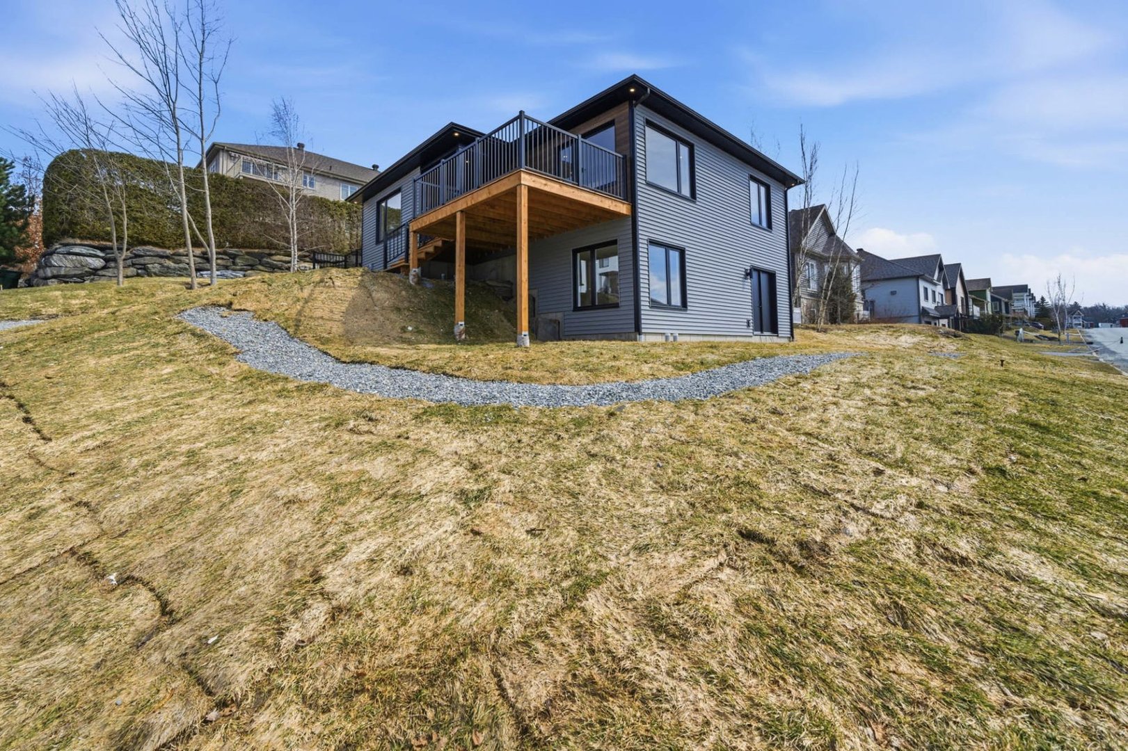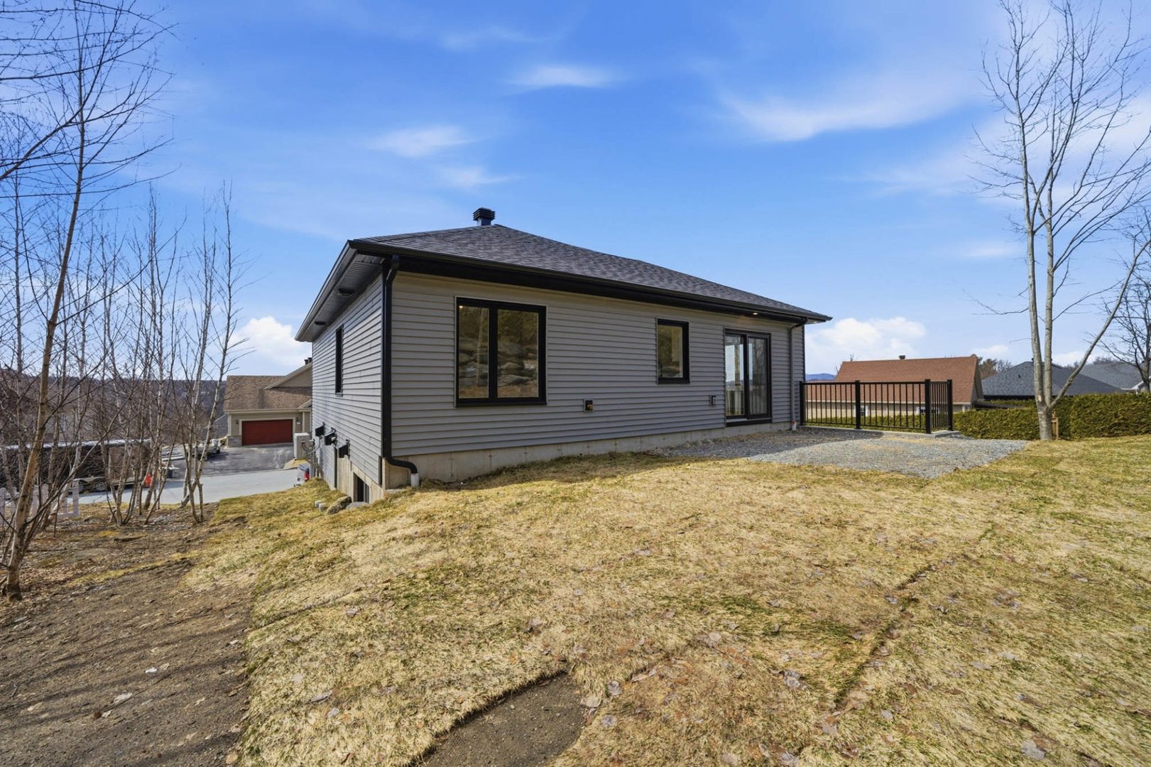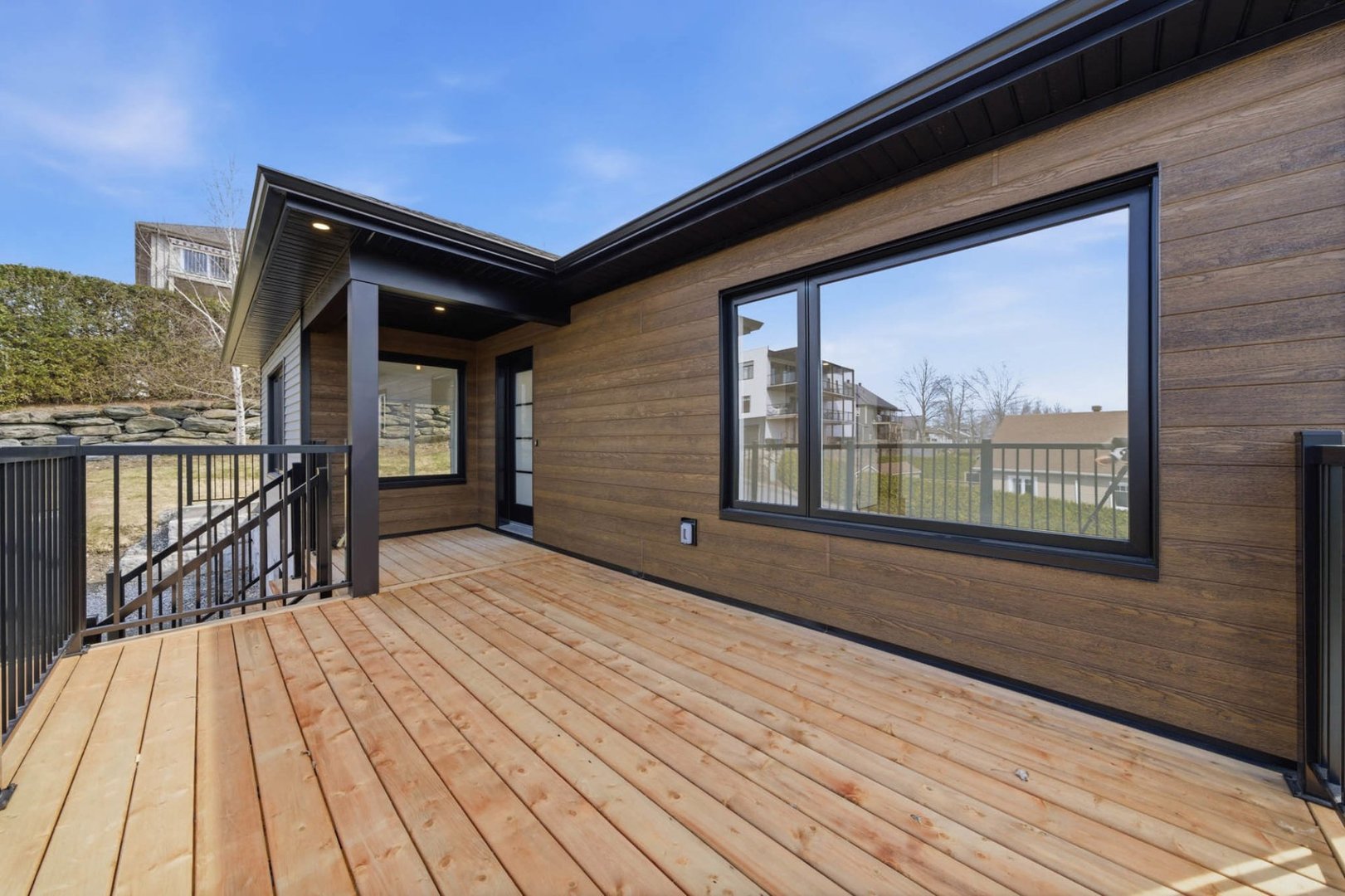 Coup de coeur! Construction neuve 2026 avec magnifique vue sur le mont Orford. Bungalow aux lignes contemporaines avec rez-de-jardin aménagé, offrant 4 chambres, 2 salles de bain complètes, grand walk-in, salle de lavage indépendante et sous-sol exceptionnellement lumineux. Aire ouverte conviviale, cuisine moderne avec îlot, planchers de bois d'ingénierie, thermopompe et terrasse avec vue dégagée. Terrain de coin de plus de 7 450 pi², quartier familial recherché, non loin du centre-ville et de l'accès à la plage du lac Memphrémagog via la piste cyclable accessible au rond-point à proximité. Garantie GCR incluse.