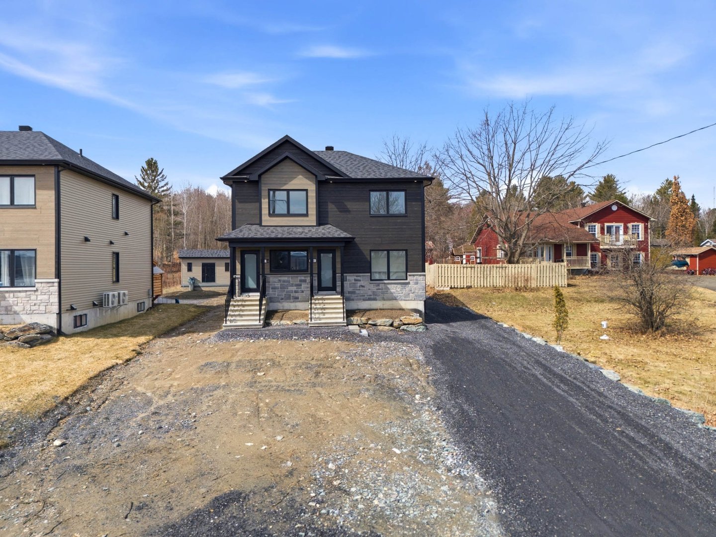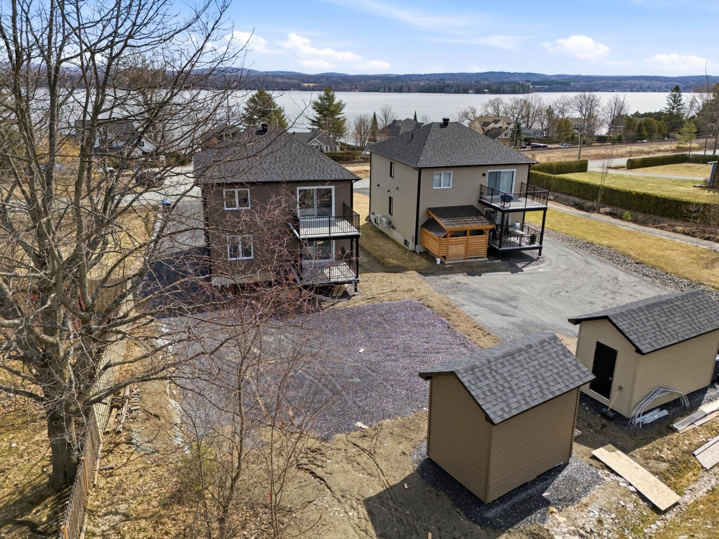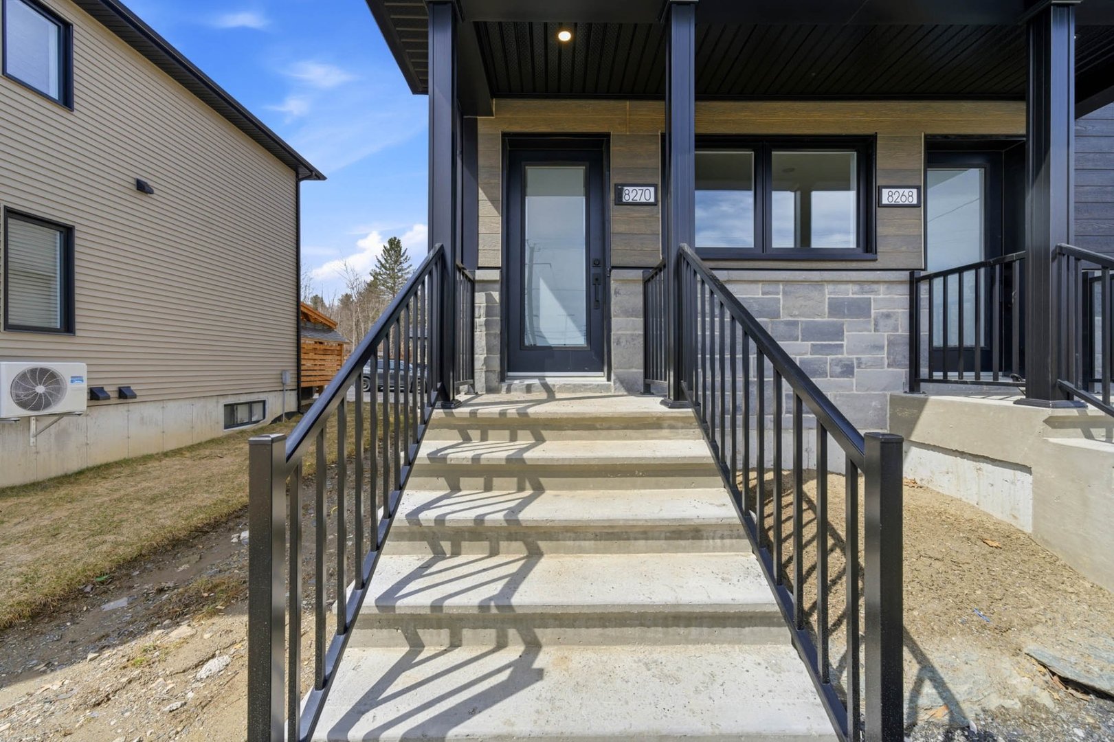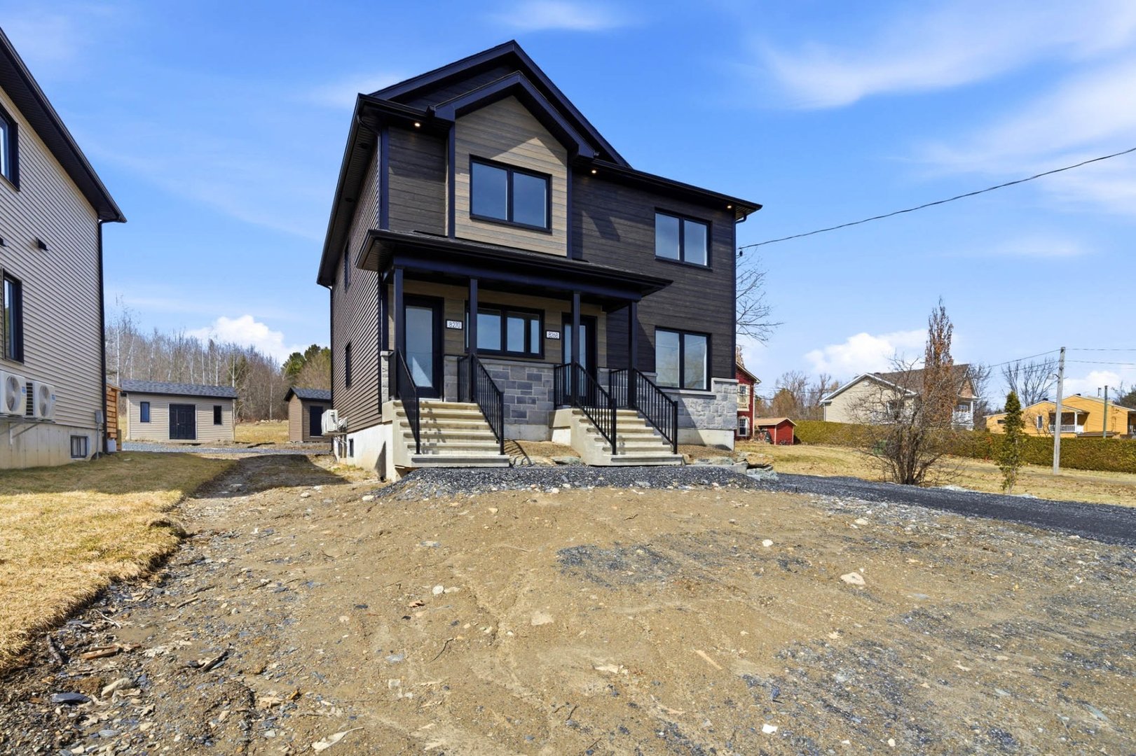 Duplex neuf 2025 à deux pas du lac Magog! Unité 8268 : splendide 6½ de 2 300 pi² sur 2 niveaux, 4 ch., 2 s.d.b., cuisine avec îlot, comptoirs de quartz, armoires mélamine noyer, garde-manger et walk-in d'entrée. Unité 8270 : lumineux 4½ de 1 150 pi², 2 ch., mêmes finitions haut de gamme. Une thermopompe par unité, balcons arrière 12'x 12' en aluminium durable, portes-patio et planchers de vinyle. Deux remises indépendantes. Terrain de 12 000 pi². Terrassement à compléter aux frais de l'entrepreneur. Vue sur le lac. Idéal pour investisseur ou propriétaire-occupant. Libre immédiatement!