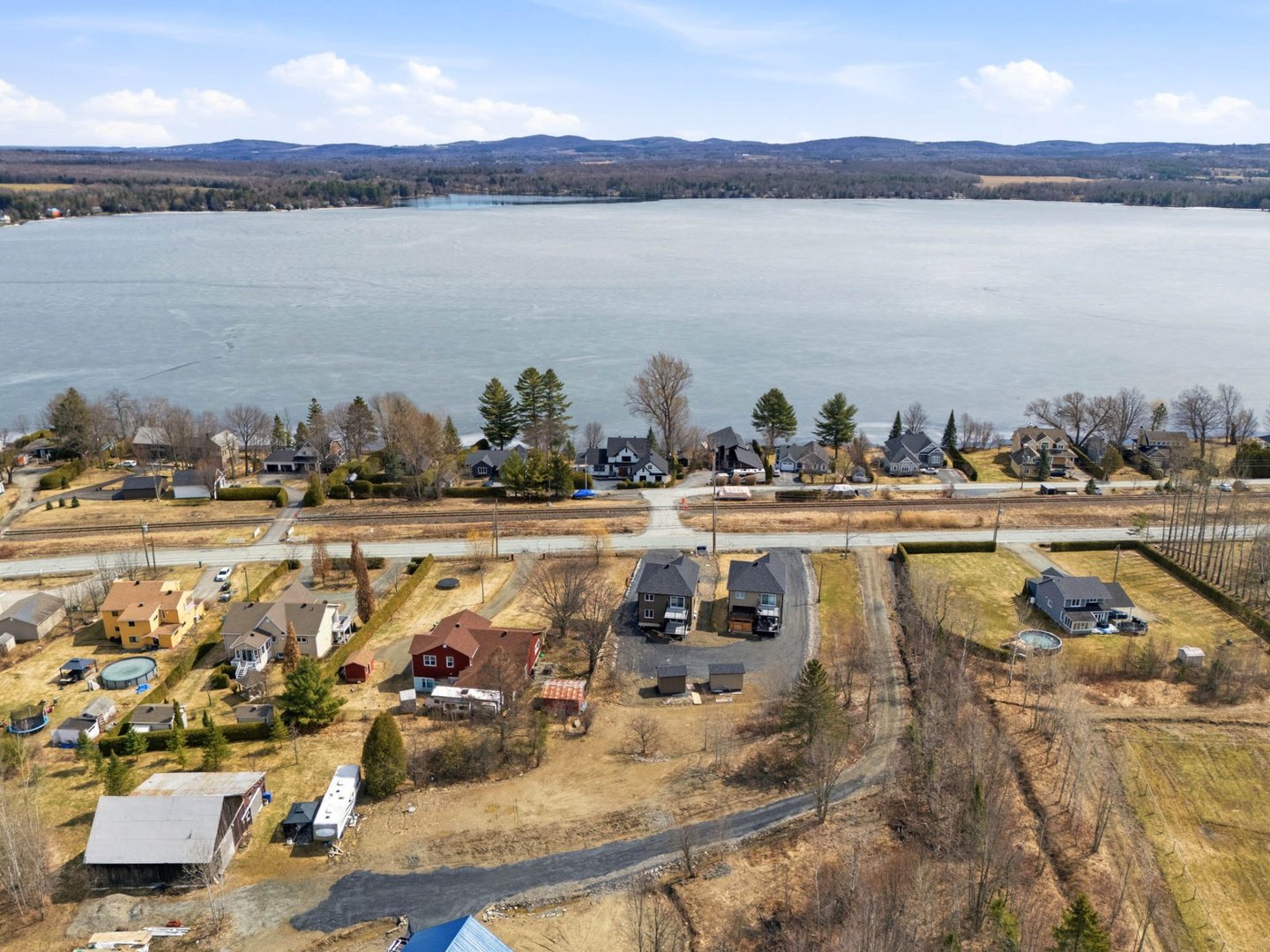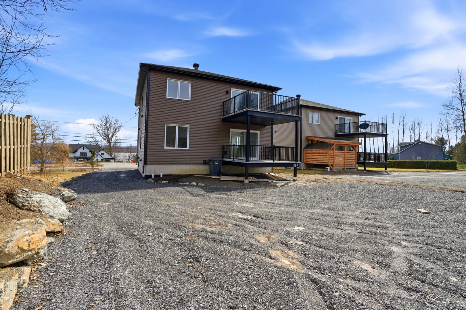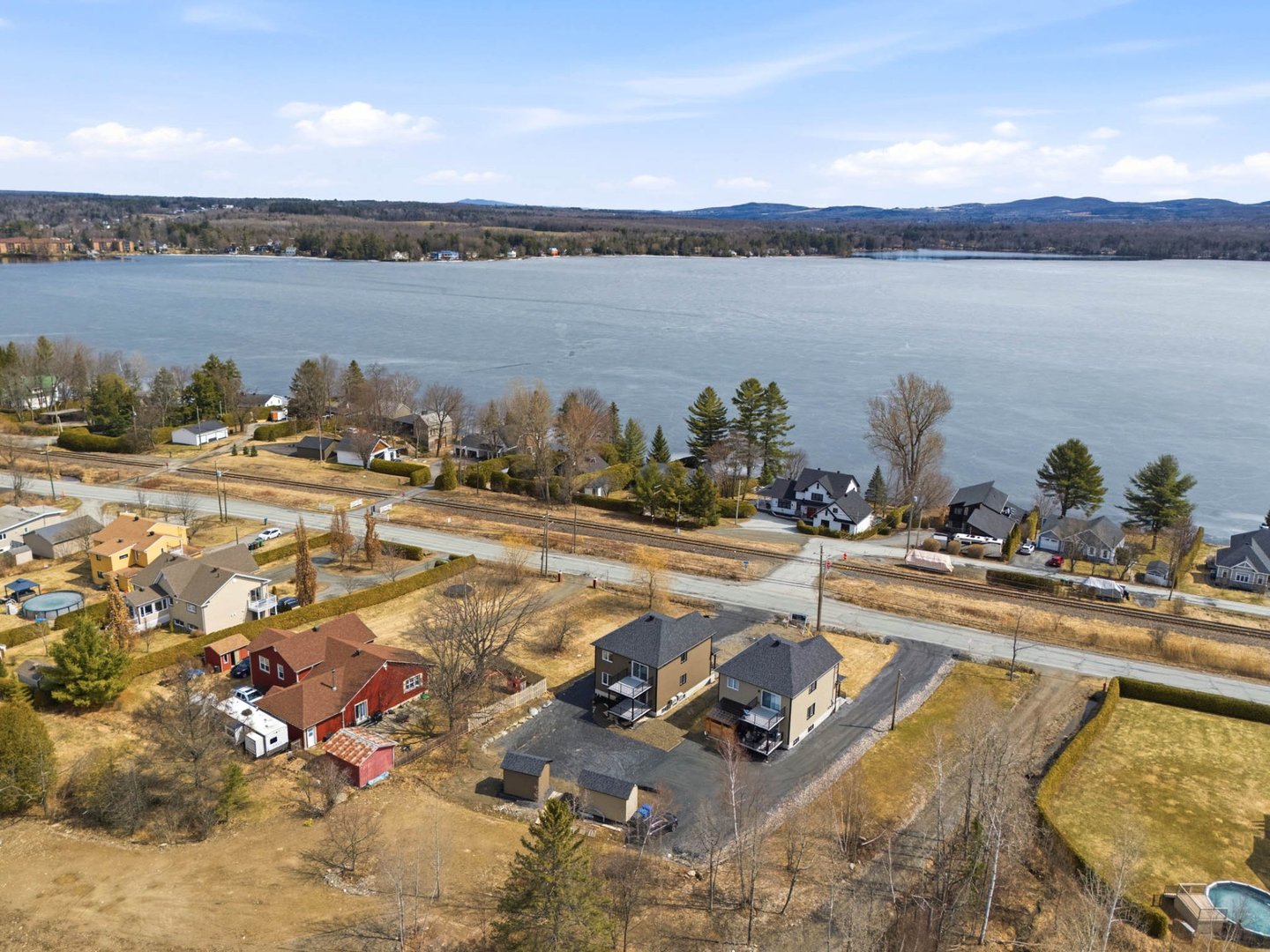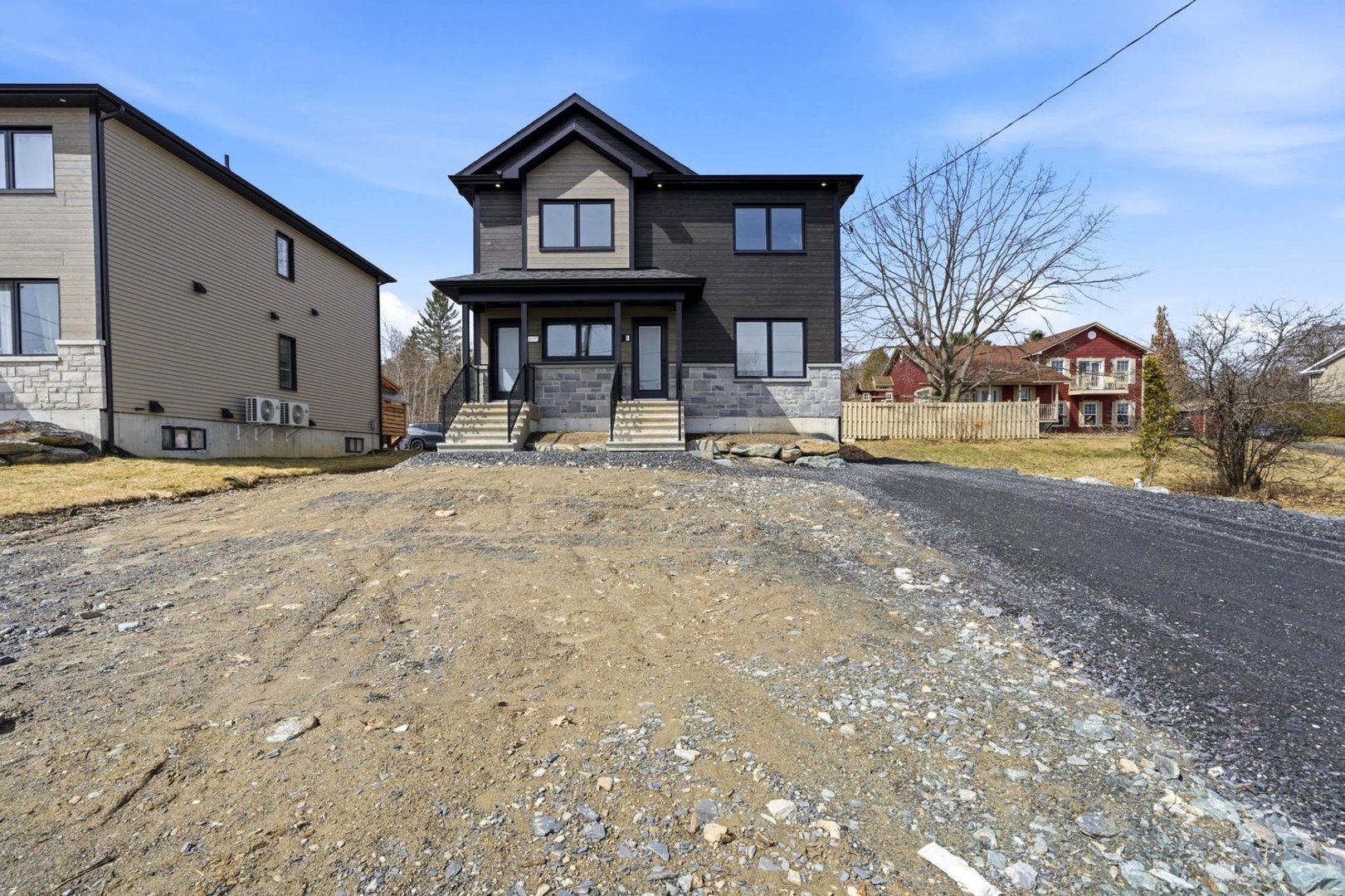 Duplex neuf 2025 à deux pas du lac Magog! Unité 8268 : splendide 6½ de 2 300 pi² sur 2 niveaux, 4 ch., 2 s.d.b., cuisine avec îlot, comptoirs de quartz, armoires mélamine noyer, garde-manger et walk-in d'entrée. Unité 8270 : lumineux 4½ de 1 150 pi², 2 ch., mêmes finitions haut de gamme. Une thermopompe par unité, balcons arrière 12'x 12' en aluminium durable, portes-patio et planchers de vinyle. Deux remises indépendantes. Terrain de 12 000 pi². Terrassement à compléter aux frais de l'entrepreneur. Vue sur le lac. Idéal pour investisseur ou propriétaire-occupant. Libre immédiatement!