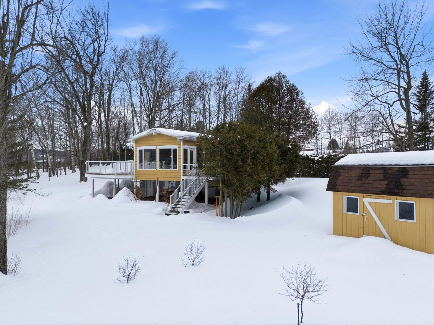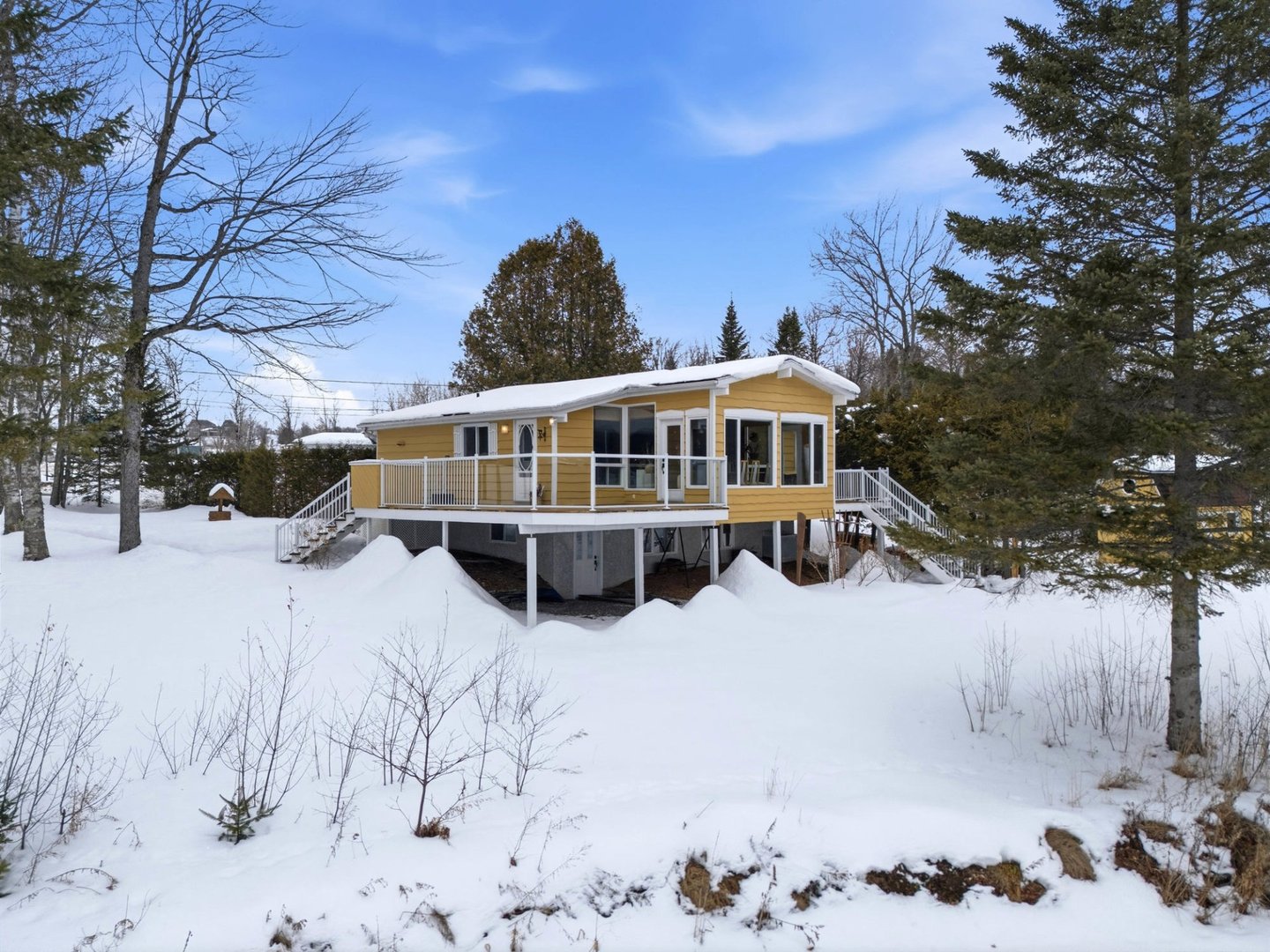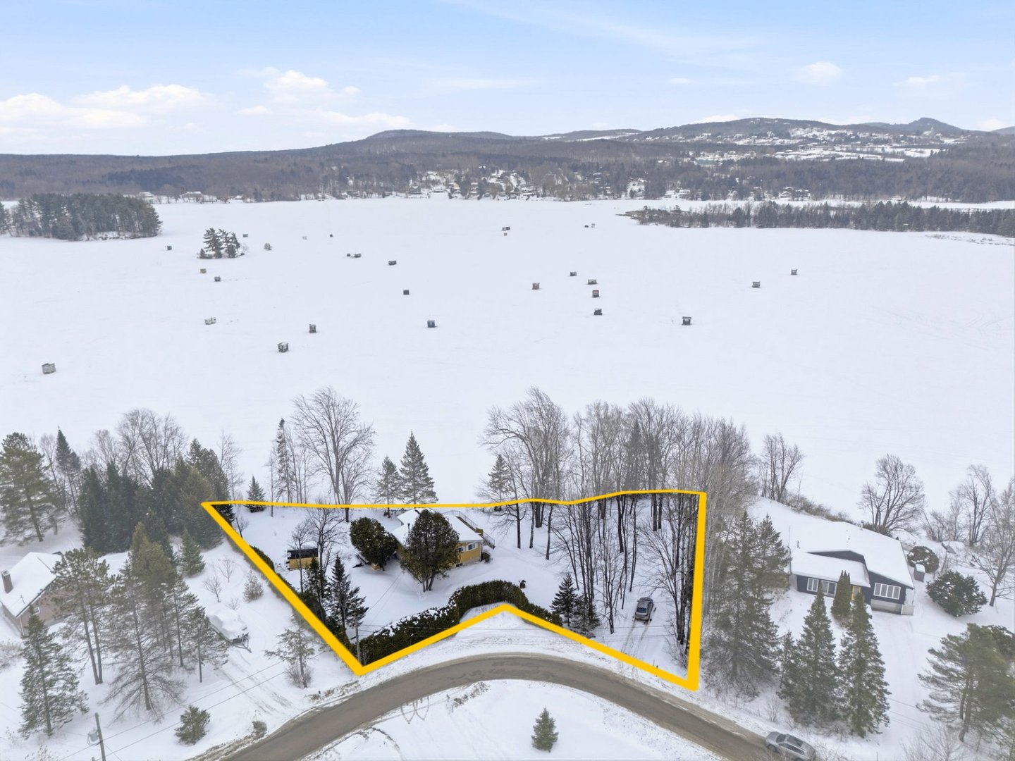 Rare opportunité sur le lac Magog avec 314 pi de frontage et un terrain boisé de plus de 32 000 pi² offrant intimité et nature, avec espace permettant l'ajout d'un garage. De l'intérieur, la vue panoramique sur l'eau est spectaculaire : aire de vie ouverte baignée de lumière, plafond cathédrale et foyer au bois créent une ambiance chaleureuse tournée vers le lac. Plain-pied avec 3 chambres, 2 salles de bains et rez-de-jardin aménagé avec entrée extérieure. Quai inclus. Secteur paisible, idéal pour la pêche sur glace et les marches vers l'île du Marais. Descente à bateaux gratuite et second accès gratuit au lac Massawippi pour les résidents.