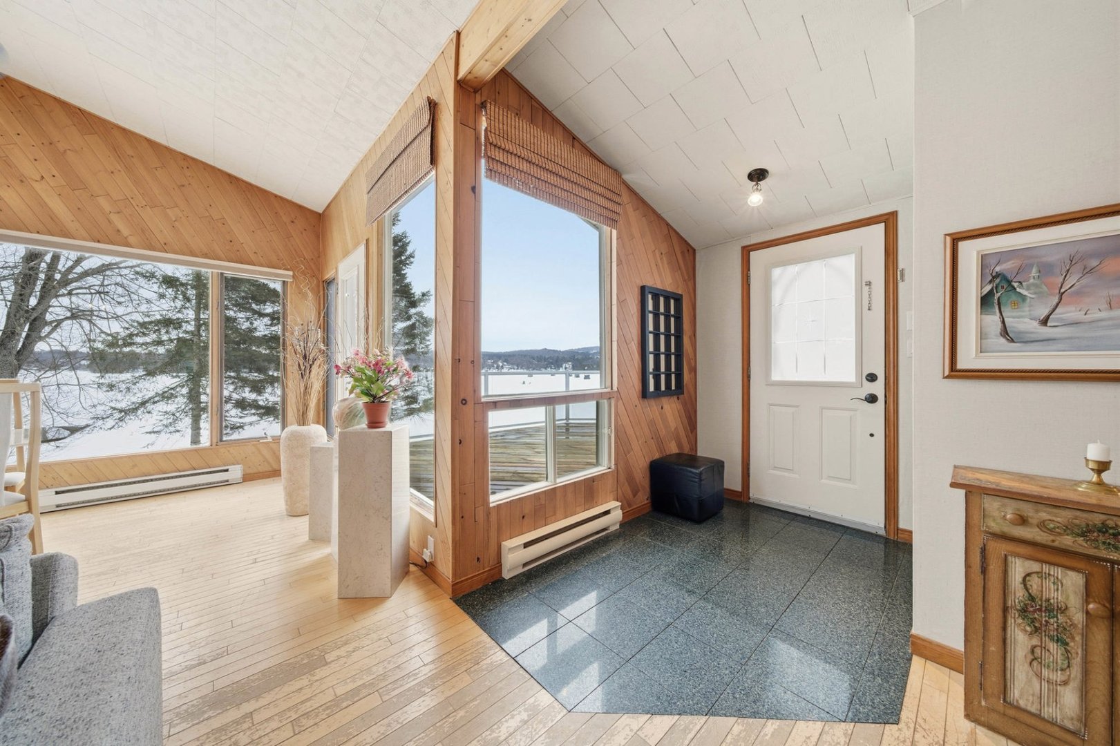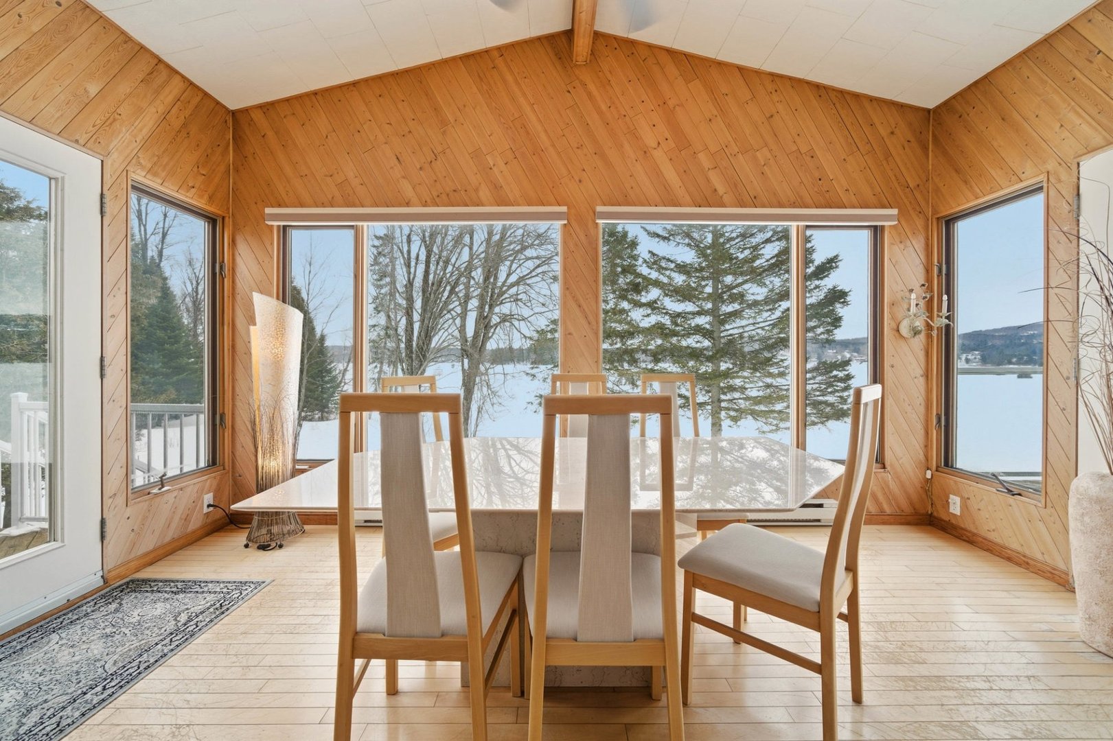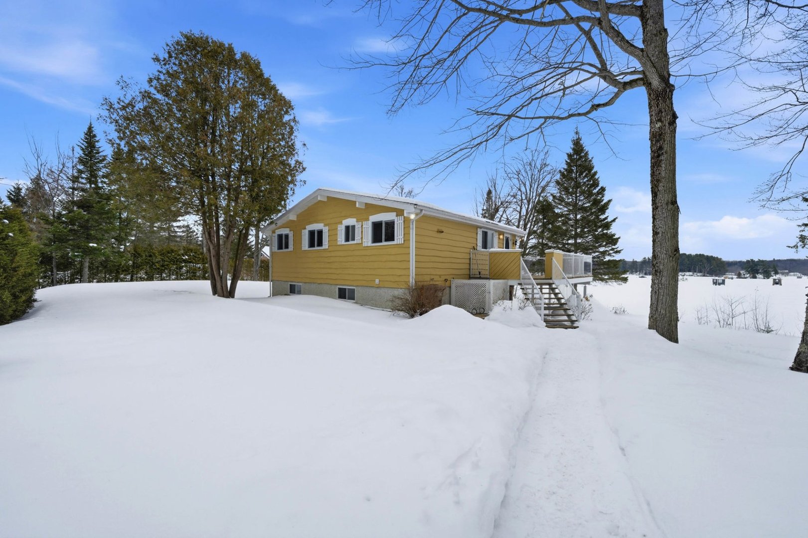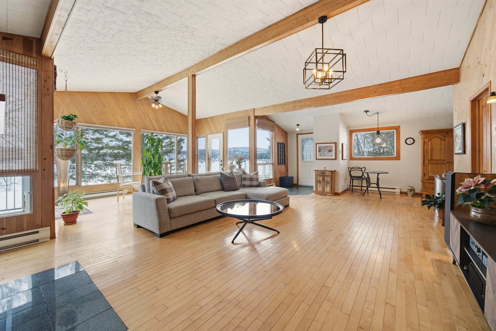 Rare opportunité sur le lac Magog avec 314 pi de frontage et un terrain boisé de plus de 32 000 pi² offrant intimité et nature, avec espace permettant l'ajout d'un garage. De l'intérieur, la vue panoramique sur l'eau est spectaculaire : aire de vie ouverte baignée de lumière, plafond cathédrale et foyer au bois créent une ambiance chaleureuse tournée vers le lac. Plain-pied avec 3 chambres, 2 salles de bains et rez-de-jardin aménagé avec entrée extérieure. Quai inclus. Secteur paisible, idéal pour la pêche sur glace et les marches vers l'île du Marais. Descente à bateaux gratuite et second accès gratuit au lac Massawippi pour les résidents.