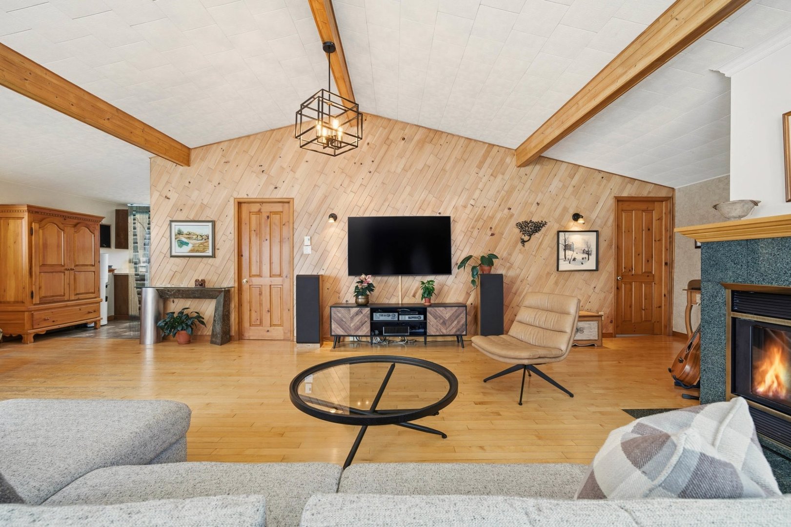Vue, foyer au bois |