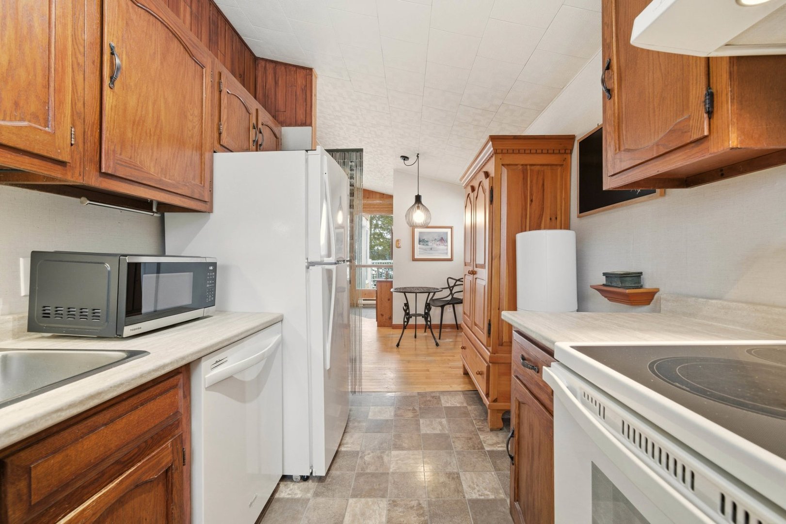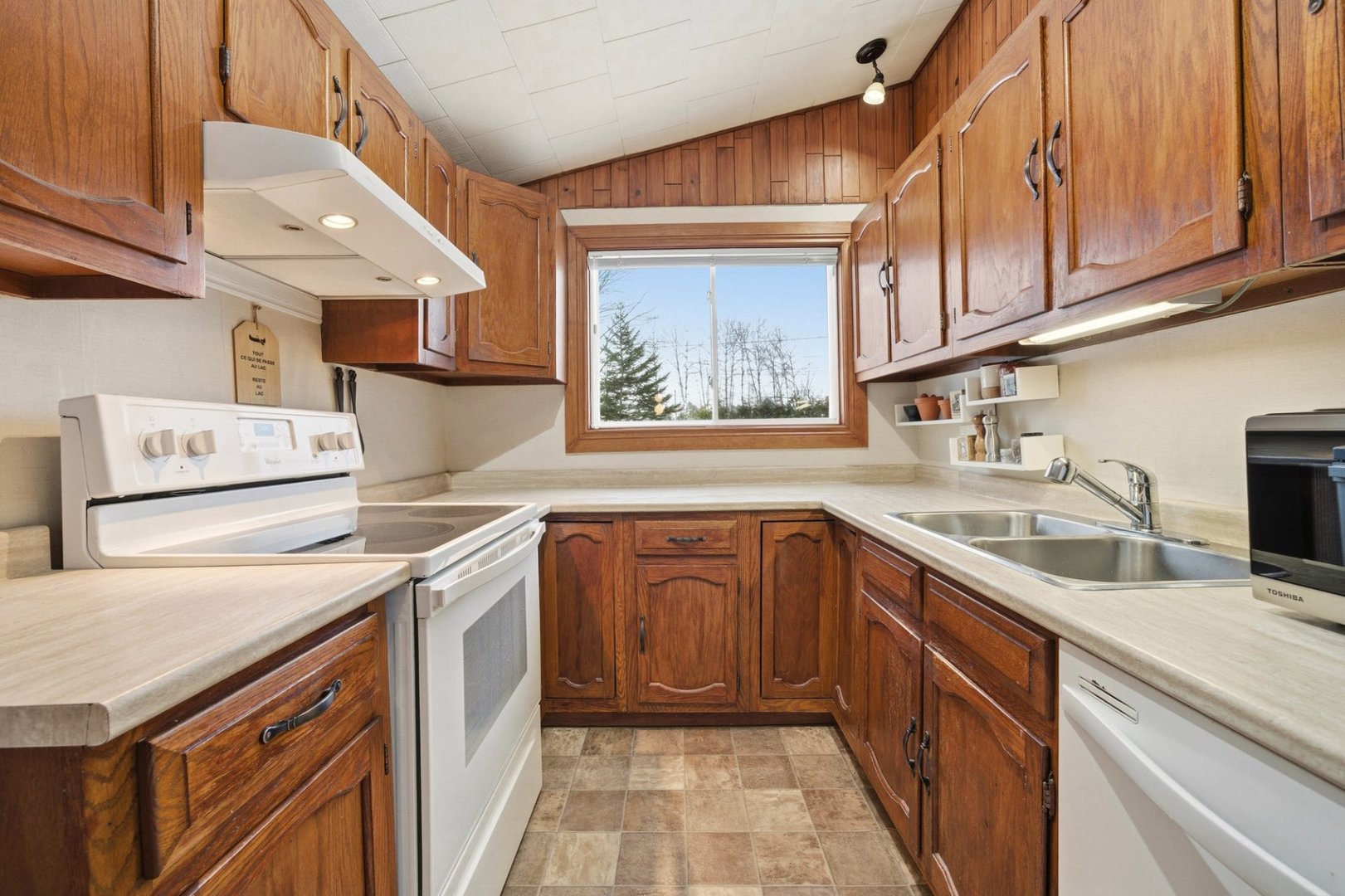 Lustres, luminaires, stores, rideaux et tringles, quai, lave-vaisselle.