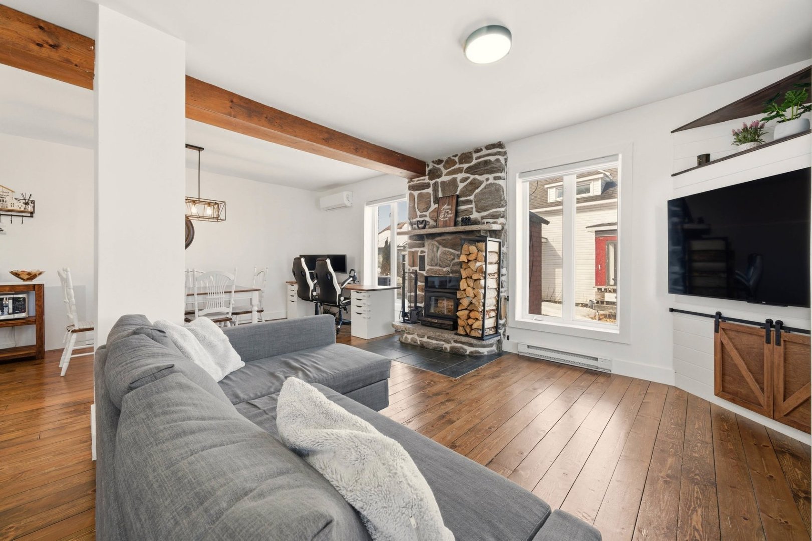 Charme d'époque et modernité à deux pas de l'Université Bishop's! Duplex unique, entretenu avec soin. Le logement principal (grand 6 ½) situé au 229 rue Queen est disponible à l'acheteur. Il offre 4 chambres, 1 SDB et 1 salle d'eau, plancher de bois, cuisine haut de gamme avec comptoirs de quartz et planchers chauffants. Le second logement (4 ½) situé au 2 rue John-Wilson assure un revenu stable de 1 090 $/mois (augmentation à 1 125 $/mois prévue à partir du 1 juillet 2026). Vaste terrain de 10 636 pi² dans un secteur stratégique, recherché et près de tous les services. Belle opportunité pour un propriétaire occupant ou investisseur.