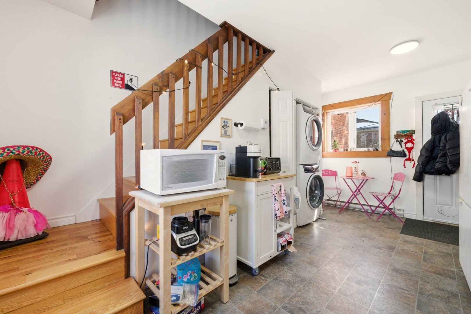#229 rue Queen : lustres, luminaires, toiles dans les fenêtres, rideaux et tringles, 2 remises. #2 rue John-Wilson : laveuse et sécheuse.