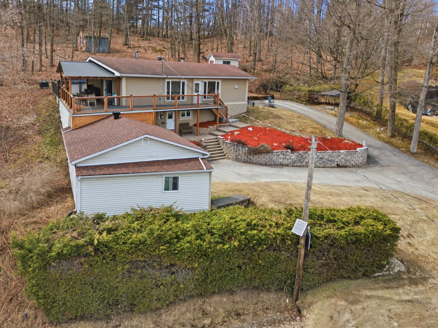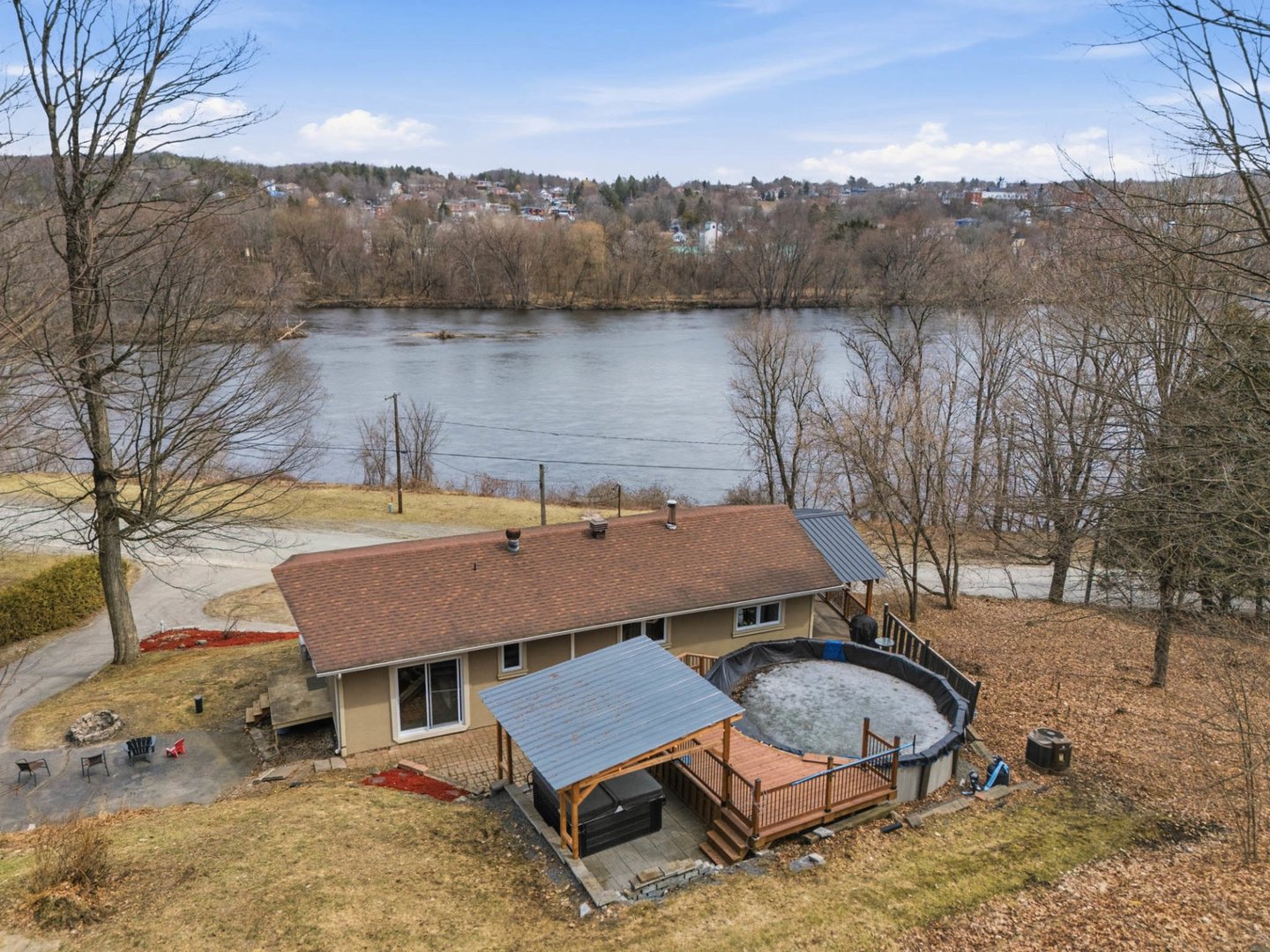 Propriété offrant une vue panoramique imprenable sur la rivière Saint-François ainsi que sur la ville de Windsor ! Plain-pied proposant 3 chambres au rez-de-chaussée et ayant bénéficié de nombreuses améliorations. Aire de vie lumineuse à aire ouverte, agrémentée de grandes fenêtres mettant en valeur la vue sur la rivière. Spacieuse galerie sur deux côtés, idéale pour profiter d'un espace extérieur intime avec une vue dégagée. Cour aménagée avec piscine hors terre chauffée, spa et pergola. Garage détaché, remise et abondant espace de rangement. Terrain de 14 665 pi². Emplacement à proximité de tous les services!