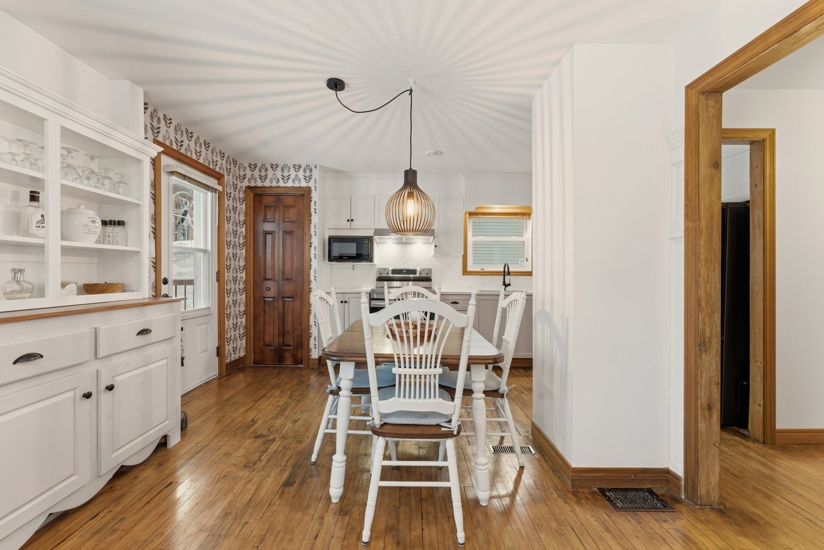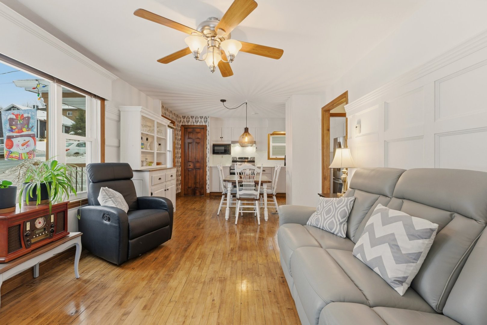 Les meubles et les effets personnels, le lustre de la salle à manger.