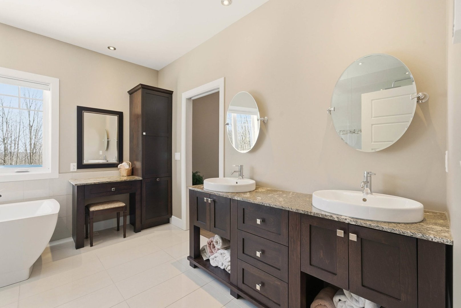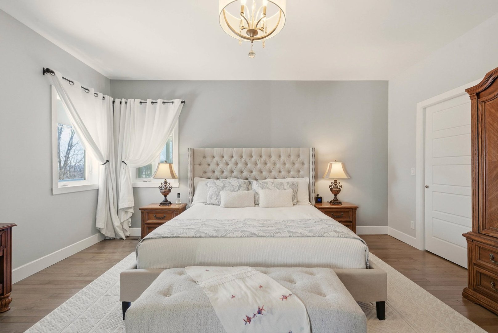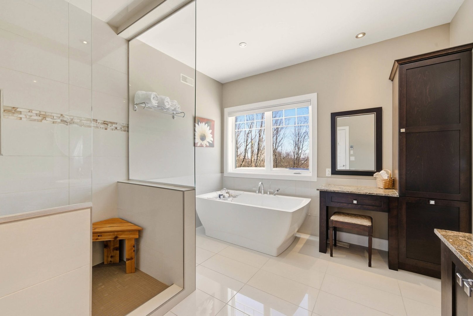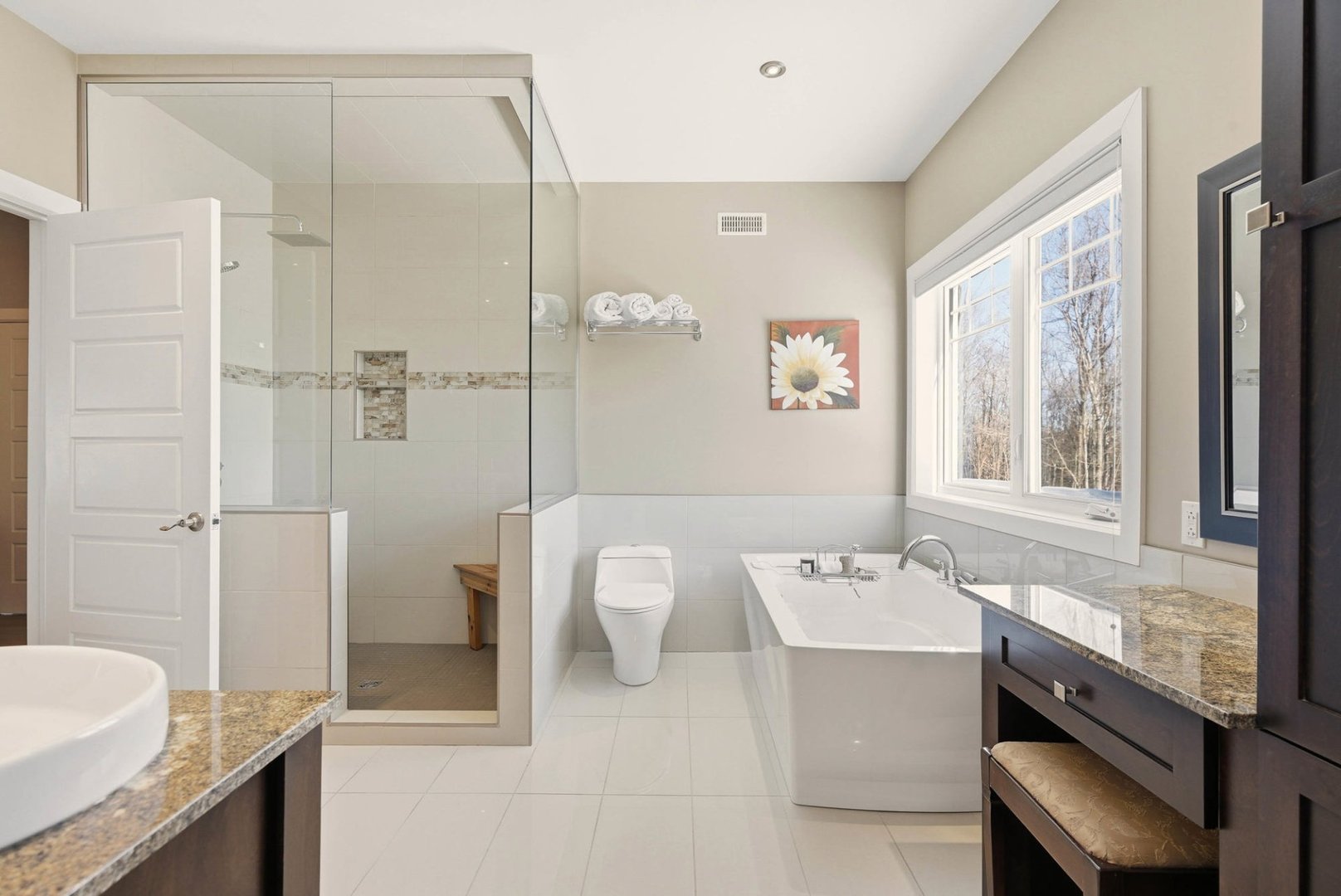 Résidence de prestige avec logement intergénérationnel. Construction 2014 d'exception alliant luxe et nature. 4 chambres à coucher, 3 SDB et 1 salle d'eau. Cuisine haut de gamme avec comptoirs de quartz et garde-manger walk-in. Planchers en merisier. Suite principale avec SDB attenante. Véranda 3 saisons & douche ext. Chauffage à air pulsé avec thermopompe et planchers chauffants (glycol/élec). Logement 3 ½ avec entrée indépendante (bi-génération). Garage attaché + remise extérieure communicante pour atelier. À 5 min de Ski Bromont, sentiers de vélo, restos et de l'A10. L'intimité totale combinée à la vie active. Une rareté sur le marché!