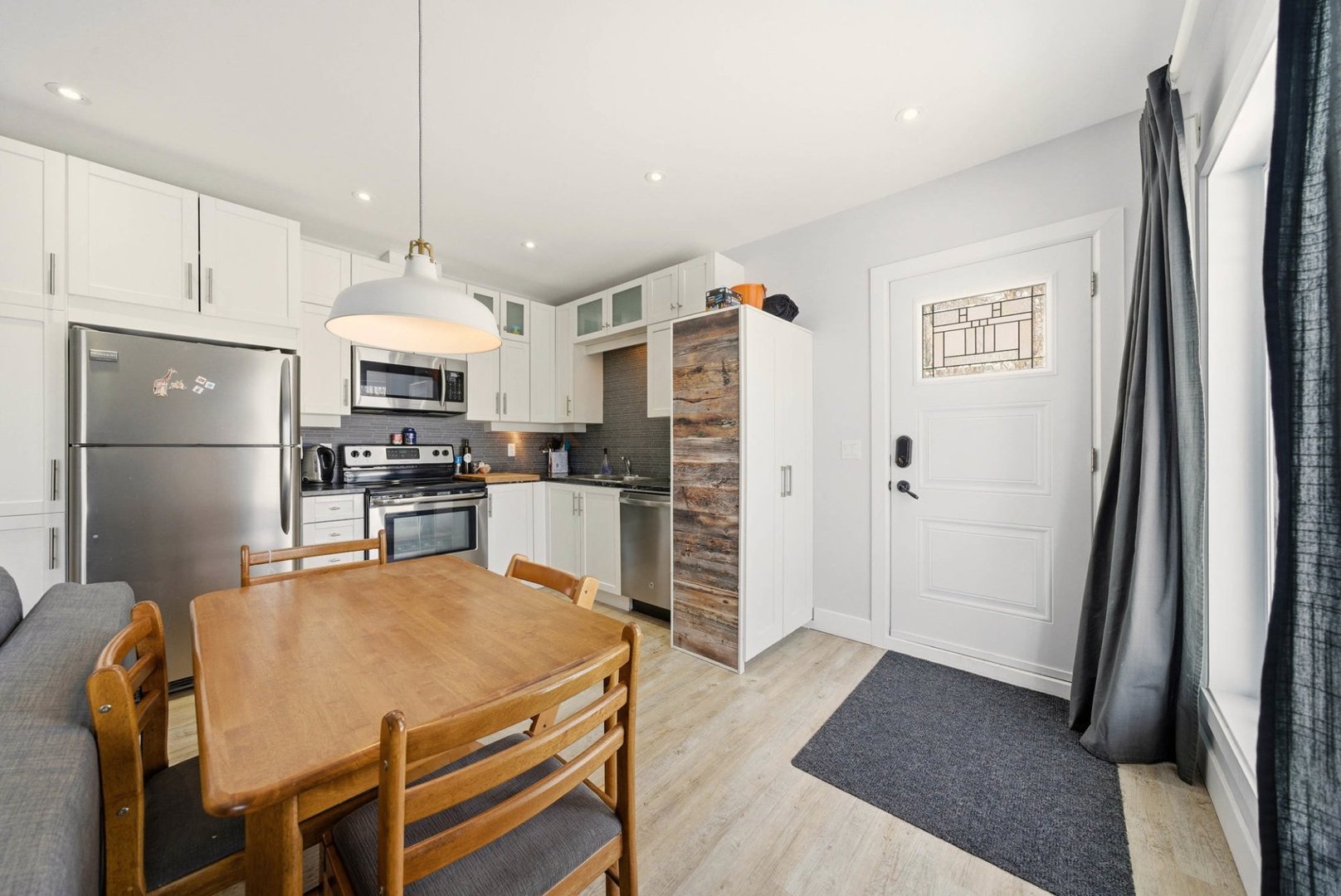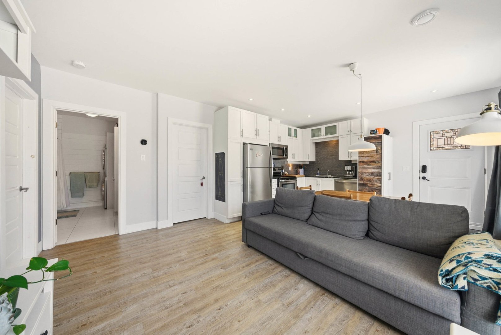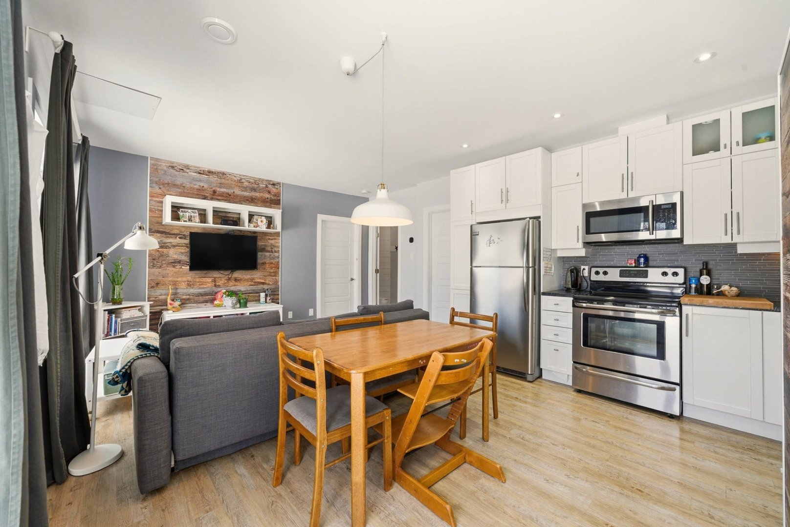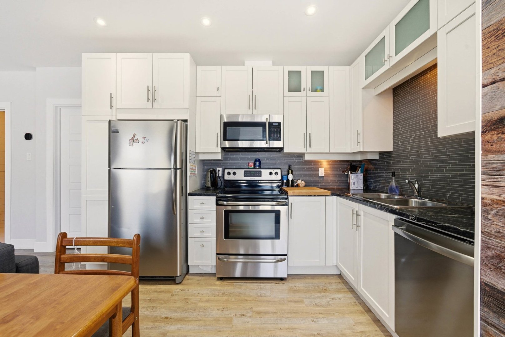 Lustres, luminaires, stores, rideaux et tringles, aspirateur central et ses accessoires, les 2 fours encastrés, cuisinière au propane, réfrigérateur, lave-vaisselle. Dans le logement d'appoint : réfrigérateur, cuisinière, lave-vaisselle, laveuse et sécheuse, penderie de la chambre à coucher, télévision et la huche de la télévision.